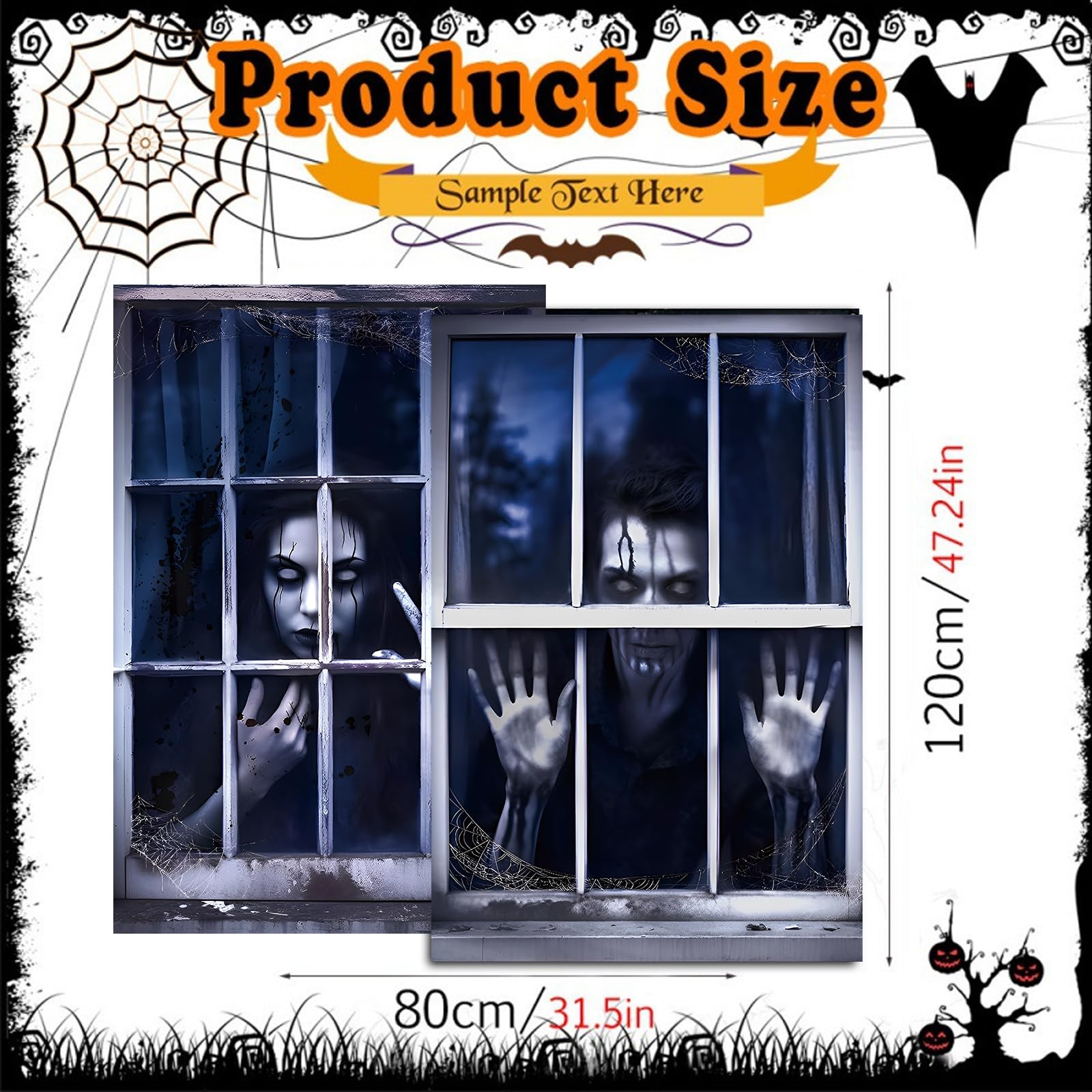 Halloween Fensterdeko Gruselige Geister - Fensterbilder 120x80cm Für Party