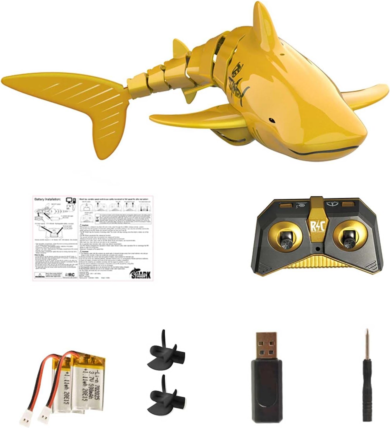 Abtauchen und Action erleben! Dieser ferngesteuerte Hai sieht nicht nur cool aus, er bewegt sich auch super realistisch im Wasser. Mit 2,4 GHz Fernsteuerung hast du eine Reichweite von bis zu 40 Metern. Der Hai kann vorwärts und rückwärts schwimmen, tauchen bis 1 Meter Tiefe und hat coole LED-Scheinwerfer. Die wasserdichte Konstruktion schützt die Elektronik, und der Akku wird per USB geladen. Ein tolles Spielzeug für Kinder, um damit im Pool, am See oder sogar in der Badewanne zu spielen. Der Schwanz ist abnehmbar – praktisch zum Reinigen oder für Reparaturen. Das ideale Geschenk für kleine und große Wasserratten!