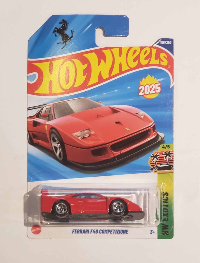 Ein absolutes Sammlerstück für alle Hot Wheels und Ferrari Fans! Dieser Ferrari F40 Competizione in knalligem Rot ist Teil der HW Exotics Serie - genau die 4. Ausgabe von 5. Noch dazu die Limited Edition 198 von 250 Stück - damit ist dieses Modell etwas ganz Besonderes! Hergestellt in Malaysia mit der typischen Hot Wheels Qualität. Die Details sind fantastisch ausgearbeitet - von den Scheinwerfern bis zum Heckspoiler. Perfekt für die Vitrine oder zum Spielen (wenn man sich traut!). Schnapp dir dieses Juwel, bevor es weg ist - solche Limited Editions sind schnell vergriffen!