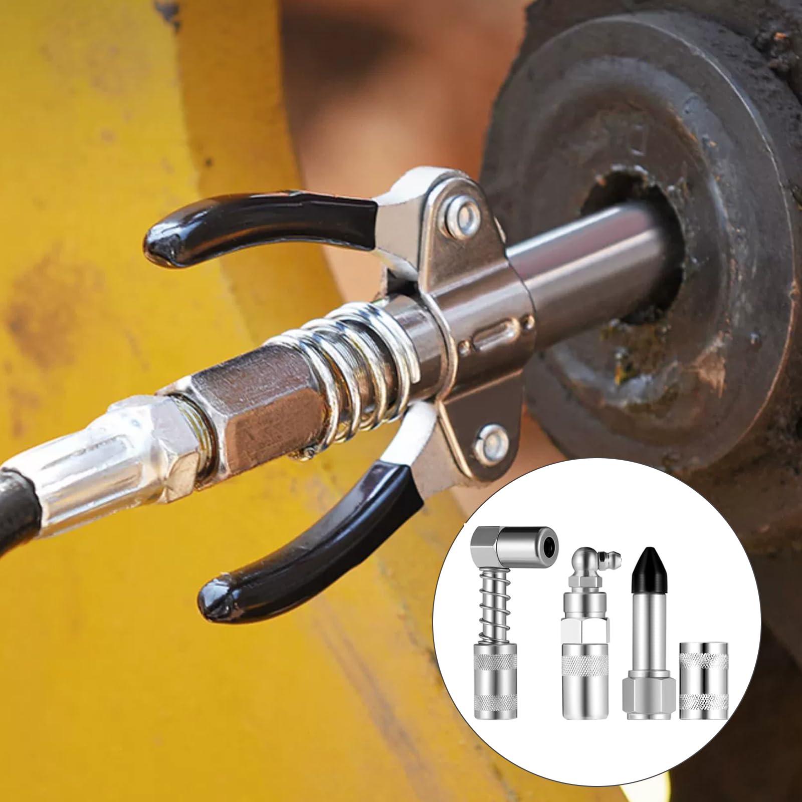 Perfektes Zubehör für deine Fettpresse! Dieses 31-teilige Set hat wirklich ALLES, was du zum professionellen Schmieren brauchst. Mit dabei: 8 verschiedene Schmiernippel für alle möglichen Anschlüsse, ein 30cm langer Flex-Schlauch der sich super biegen lässt, plus Kupplungen, Staubkappen und Reiniger. Der Schlauch ist total praktisch - du kommst damit auch an schwer erreichbare Stellen ran, ohne die ganze Fettpresse rumtragen zu müssen. Alles aus robustem, verzinktem Eisen das nicht rostet. Besonders clever: Die Adapter verhindern lästiges Überlaufen und garantieren eine dichte Verbindung. Ob am Auto, Motorrad, Fahrrad, Landmaschinen oder Industrieanlagen - dieses Set passt zu den meisten Fettpressen auf dem Markt. Die verschiedenen Nippel-Größen und -Formen bedeuten: Du bist für jede Schmieraufgabe gerüstet! Einfach den passenden Adapter aufstecken, Fettpresse ansetzen und schon läuft's ohne Kleckern und Schmieren. Super für die Werkstatt, Garage oder unterwegs. Alles sicher verpackt in einem kompakten Set - so hast du dein Schmierzubehör immer griffbereit und musst nicht ewig suchen. Ein Muss für jeden, der regelmäßig schmieren muss!