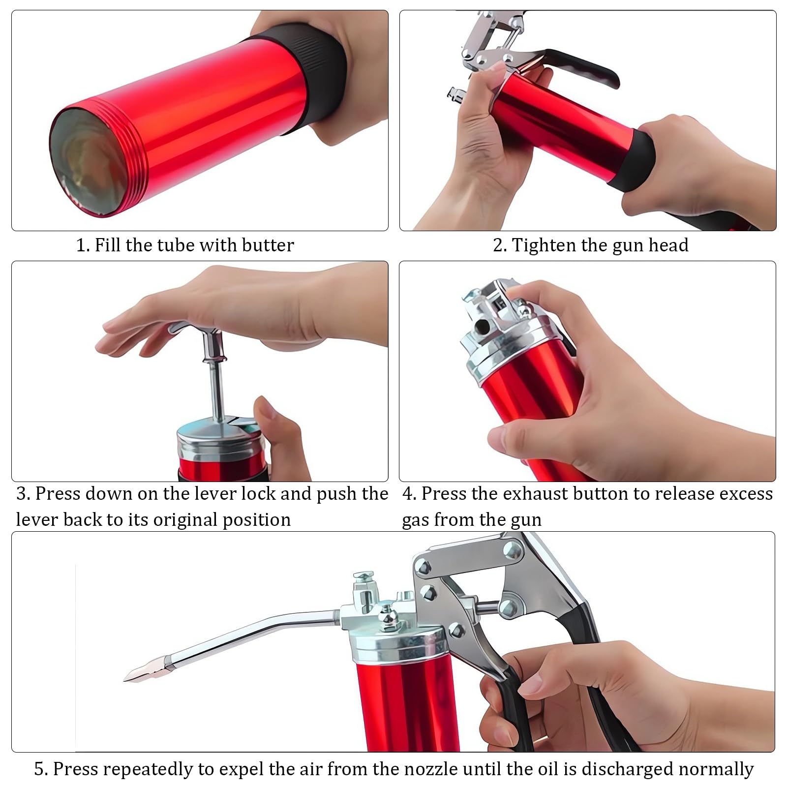 Fettpresse Set 8000 PSI - Hochdruck Schmierpistole Mit Schlauch & Zubehör | Kompatibel Mit 400cc Kartuschen