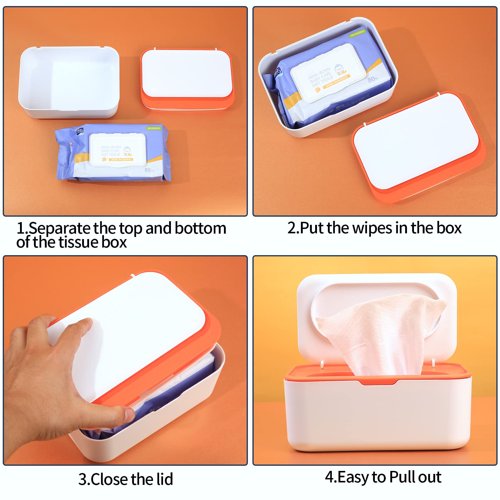 Endlich Ordnung im Feuchttuch-Chaos! Dieser praktische Spender hält deine Feuchttücher immer frisch und griffbereit. 🧻\n\nMit dem cleveren Flip-Top Deckel bleiben die Tücher staubfrei und hygienisch sauber. Einfach mit einer Hand öffnen, Tuch ziehen, zuklappen - fertig!\n\nTechnische Daten:\n- Maße: 19x13x7,8cm\n- Farbe: Orange/Schwarz (auch andere Farben verfügbar)\n- Material: Hochwertiger Kunststoff\n- Wasserdicht und robust\n\nSuper vielseitig einsetzbar:\n- Im Badezimmer für Feuchttücher\n- Im Babyzimmer für Windelwechsel\n- Im Auto für unterwegs\n- Im Büro für die Schreibtisch-Hygiene\n- In der Küche für schnelles Saubermachen\n\nDer Innenraum ist geräumig genug für mehrere Nachfüllpacks. Spart Platz und sieht dabei noch stylisch aus!\n\nWarum das praktisch ist? Kein Herumkramen mehr in halbleeren Verpackungen, keine austrocknenden Tücher, immer alles griffbereit!\n\nEinfach zu reinigen - einfach mit einem feuchten Tuch abwischen. Hält lange und sieht auch nach Monaten noch wie neu aus.\n\nAlso: Hygiene + Ordnung + stylisches Design = perfekter Feuchttuch-Spender für die ganze Familie!