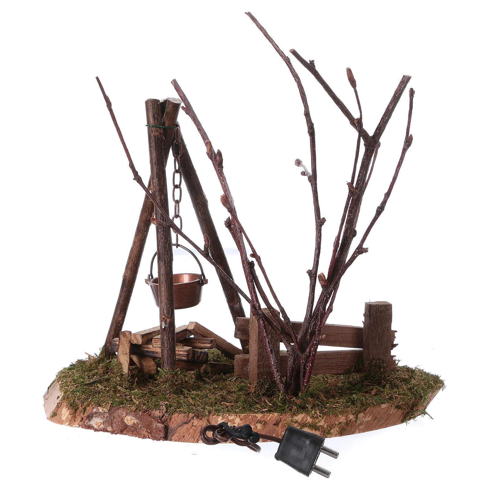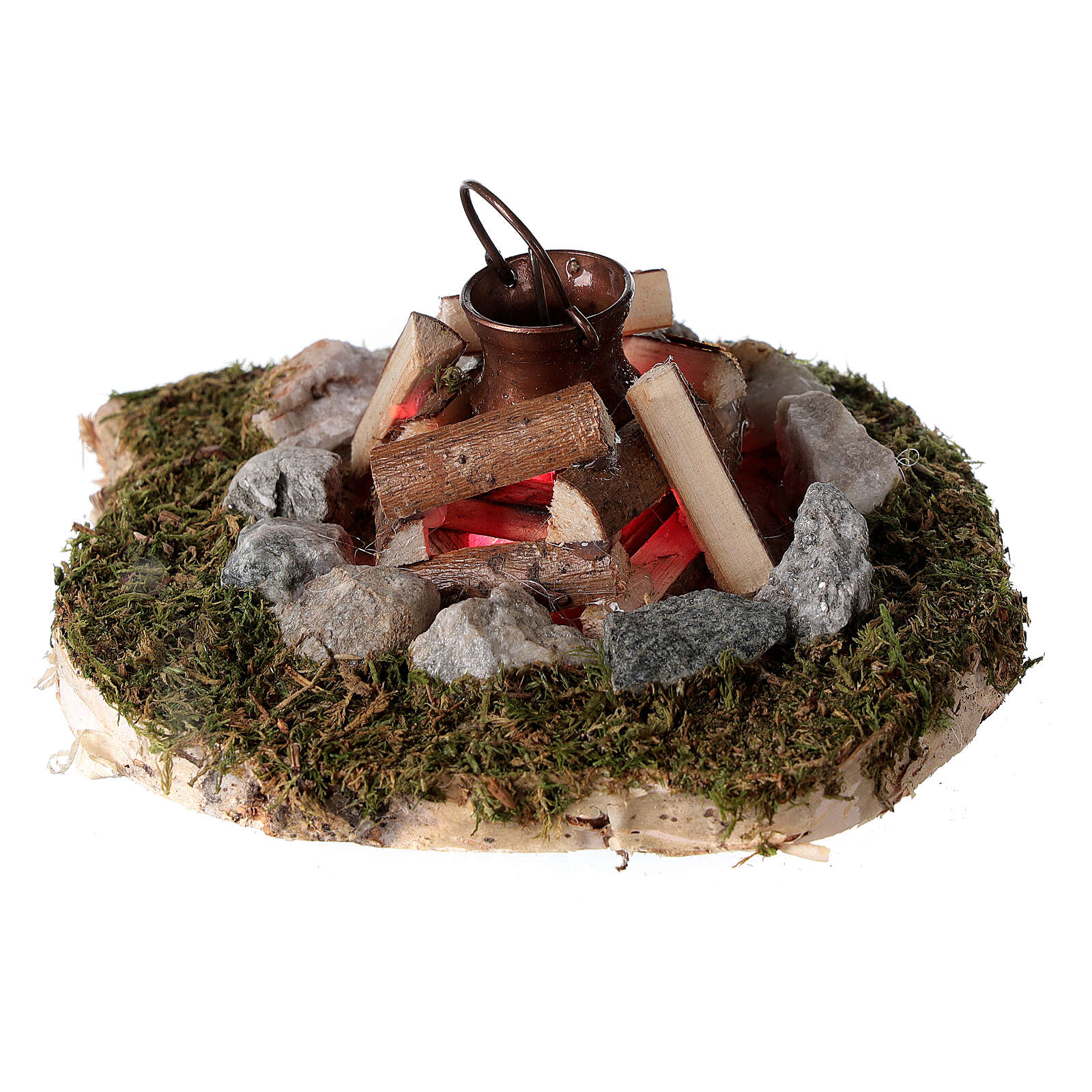Holyart Feuerlager Mit Topf Für Krippe - Holz & Moos Mit Flackerlicht