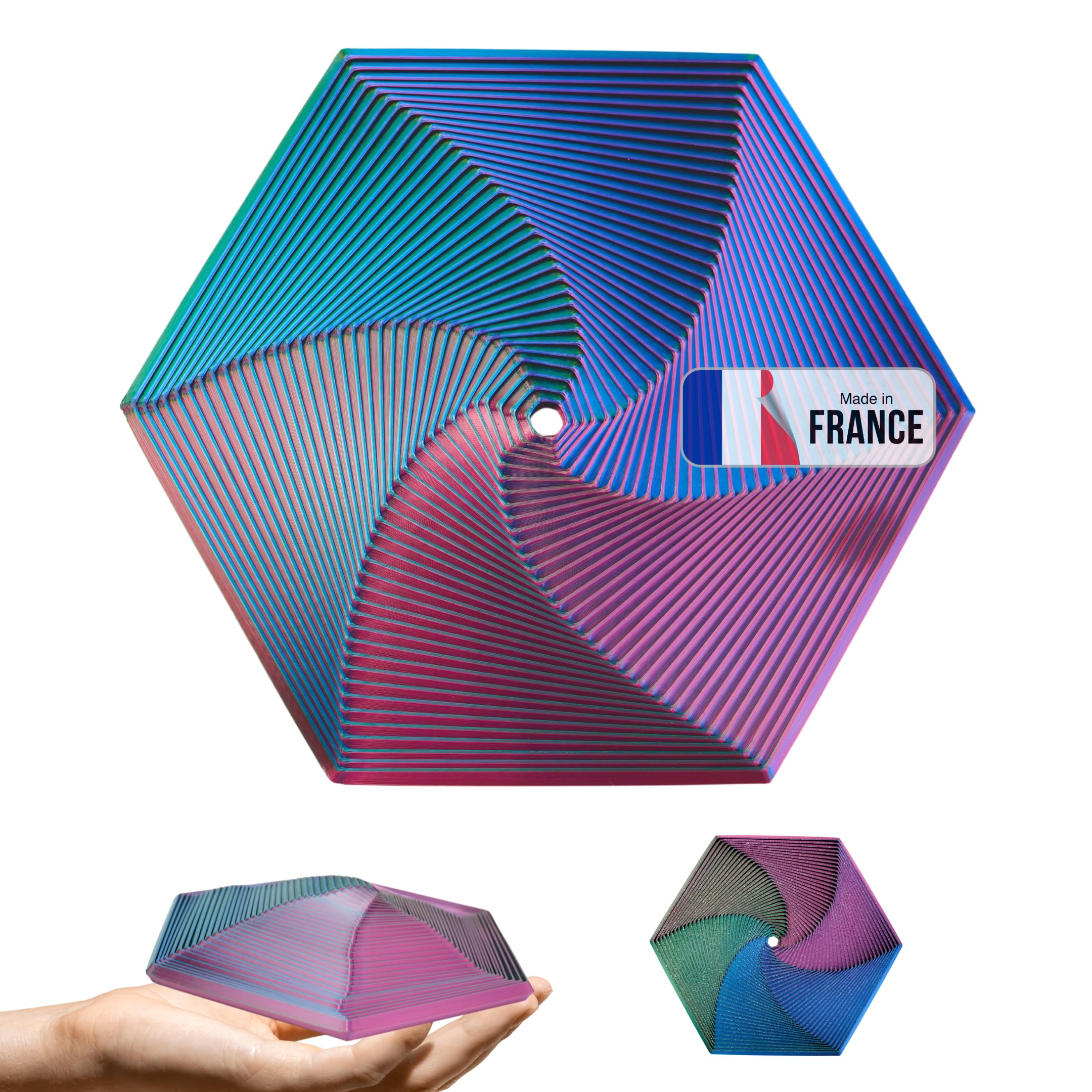Hast du auch manchmal nervöse Hände oder brauchst eine Ablenkung in stressigen Momenten? Das Fractal Fidget Hexagon ist genau das Richtige für dich! Dieses coole 3D-Spielzeug besteht aus umweltfreundlichem PLA-Material und fühlt sich super angenehm in der Hand an. Die beiden Hexagone in Hellblau und Violett haben verschiedene Größen - perfekt für große und kleine Hände. Du kannst die Spiralen drehen, schieben und immer neue Muster entdecken. Das macht nicht nur Spaß, sondern hilft echt gegen Stress und Unruhe. Egal ob im Büro, in der Schule, bei langen Zugfahrten oder einfach zu Hause auf dem Sofa - dieses Fidget Toy ist dein kleiner Begleiter für mehr Entspannung. Es fördert sogar die Konzentration, weil dein Gehirn dabei aktiv bleibt. Und das Beste: Es passt in jede Tasche! So hast du immer eine Beschäftigung für zwischendurch. Das Fractal Hexagon ist auch ein mega Geschenk für Freunde, Kollegen oder Familienmitglieder, die oft gestresst sind. Geburtstag, Weihnachten oder einfach so - damit machst du garantiert eine Freude! Also, warum noch länger zögern? Hol dir dieses innovative Spielzeug und dreh deinen Stress einfach weg!