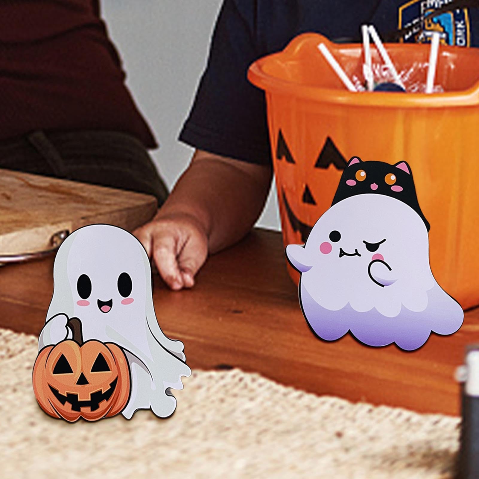 Mit etwa 15-20 cm Höhe (je nach Modell) ist der Geist ein echter Hingucker - ob auf dem Kaminsims, dem Regal oder als Tischdekoration für deine Halloween-Party. Es gibt verschiedene Stile zur Auswahl: den frechen Mittelfinger-Geist, den romantischen Geist der Herzen oder den niedlichen traurigen Geist.