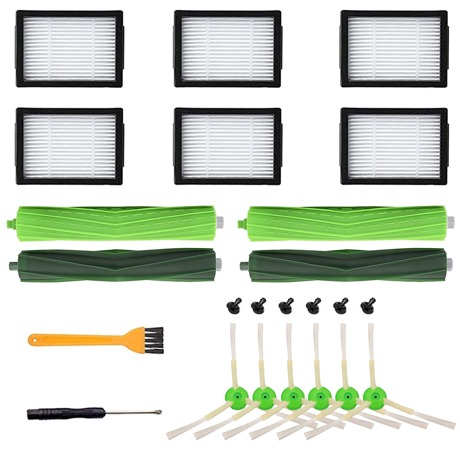 Dein Roomba braucht mal wieder eine Auffrischung? Dieses Ersatzteil-Set bringt deinen Staubsauger-Roboter zurück in Top-Form! Kompatibel mit vielen Modellen: i3, i7, j7, E5, E6, E7 und mehr. Im Set enthalten: 2x robuste Gummibürsten, 4x HEPA-Filter für feinste Partikel und 4x Seitenbürsten für gründliche Reinigung. Plus 2x praktische Reinigungswerkzeuge - alles, was du brauchst! Die Teile sind super einfach zu wechseln - kein Technik-Profi nötig! Besonders effektiv gegen Haare von dir und deinen Haustieren - keine Verwicklungen mehr in den Bürsten. Hochwertige Materialien garantieren dir Langlebigkeit und zuverlässige Leistung. Dein Roomba saugt wieder wie am ersten Tag - versprochen! Mit den neuen Bürsten erreicht er auch wieder problemlos Ecken und Kanten. Die Filter sorgen für saubere Luft in deinem Zuhause. Inklusive 60-Tage-Garantie - kauf dich sorgenfrei! Perfekte Wartung für deinen treuen Putzhelfer. Einmal im Jahr wechseln - und dein Roomba läuft und läuft!