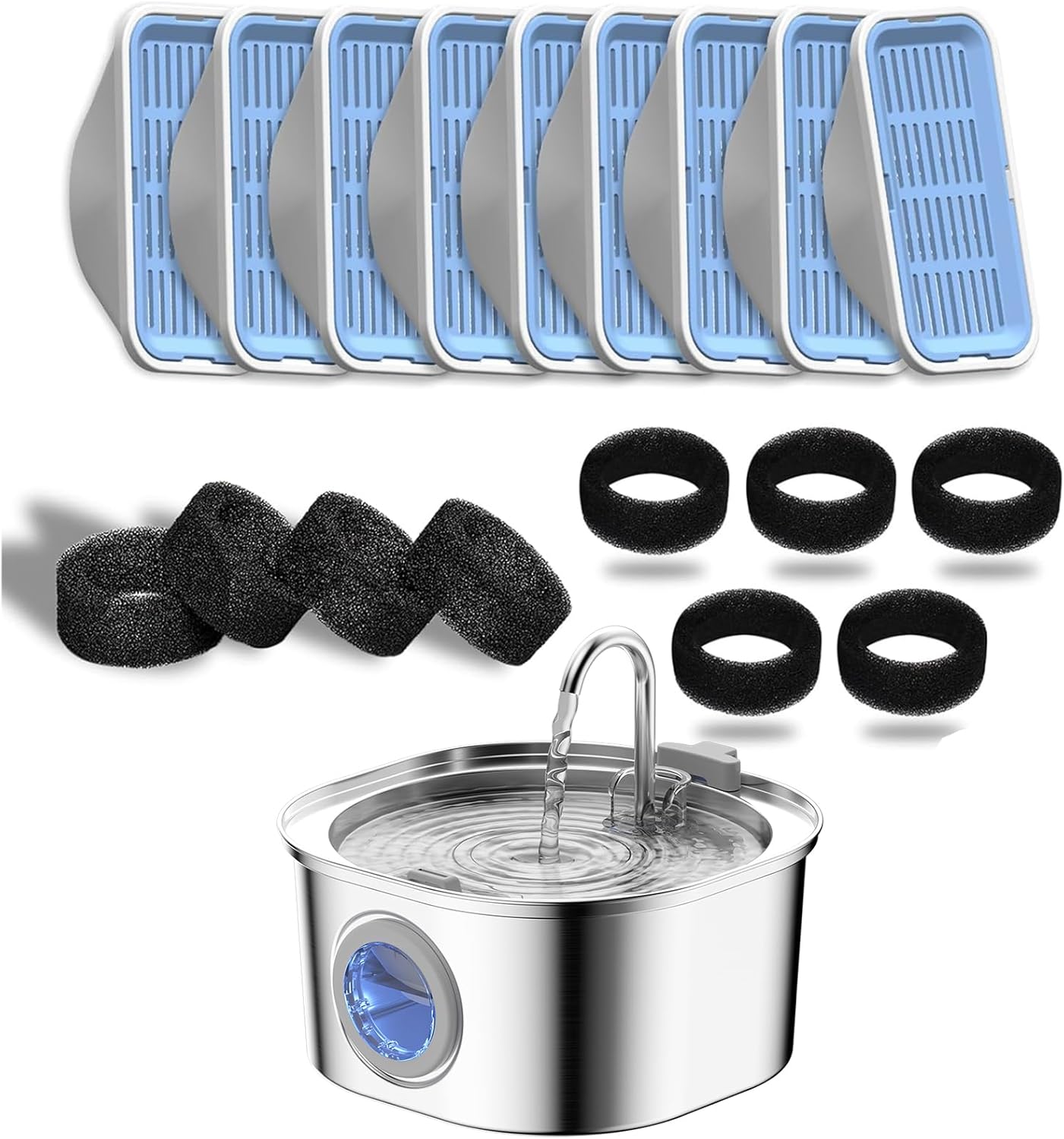 Mukkela Katzenbrunnen Filter 9er Pack - Ersatzfilter Mit Vorfilter Schwämmen Für 3.2L Edelstahl Trinkbrunnen