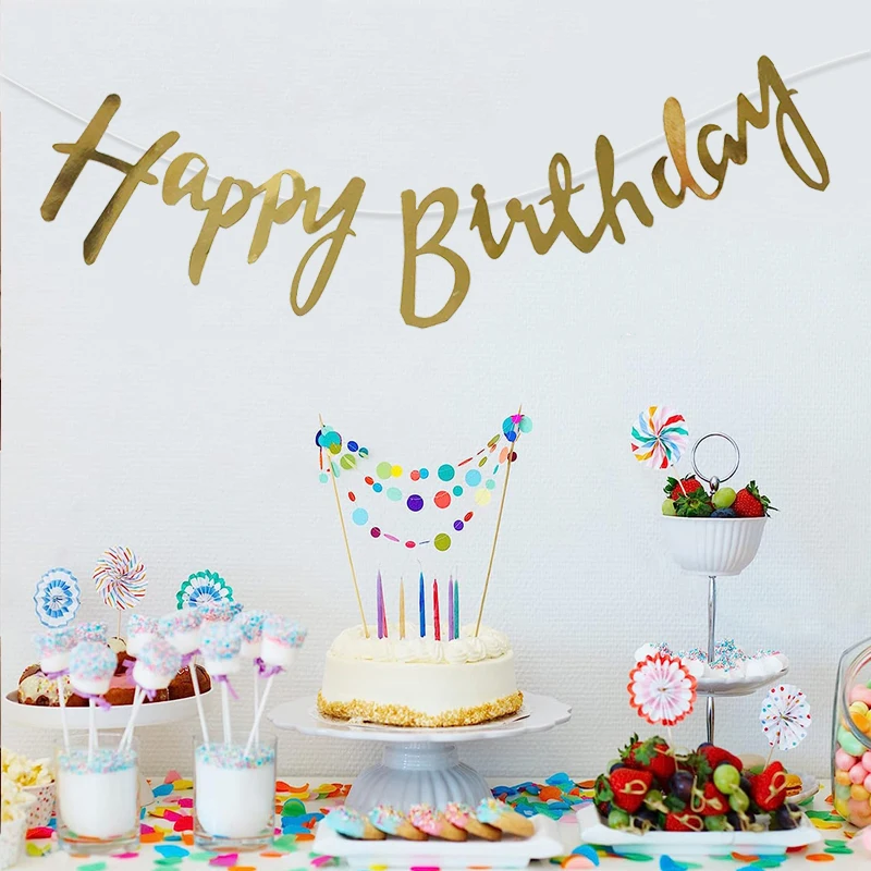 Happy Birthday Banner Filz - Glitzer Schild Mit Klebepunkten Für Partydeko