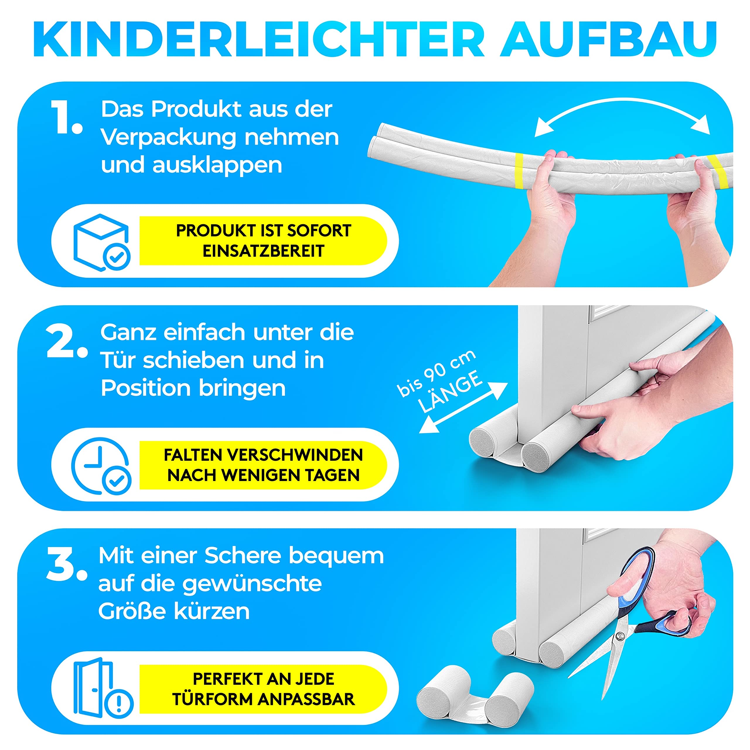 Brrr, ist das kalt an der Tür! Aber mit diesem süßen Zugluftstopper mit 4 Elchen bleibt die kalte Luft draußen. 90cm lang, passt perfekt an Standardtüren. Aus weichem Filz, dichtet super ab und die 25cm hohen Elche sehen einfach niedlich aus. Besonders in der Weihnachtszeit ein echter Hingucker! Einfach anbringen - selbstklebend, kein Bohren nötig. Spart Energie und hält die Wärme drinnen. Ob Haustür, Balkontür oder Innentüren, überall einsetzbar. Macht dein Zuhause gleich viel gemütlicher. Und die Elche bringen direkt weihnachtliche Stimmung mit. Praktisch und dekorativ zugleich!