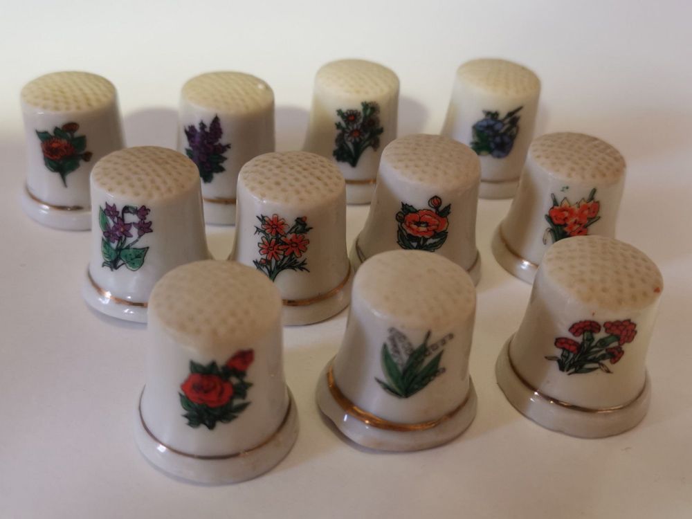 Porzellan Fingerhüte Mit Blumenmuster - Handgefertigt In England Mit Geschenkbox