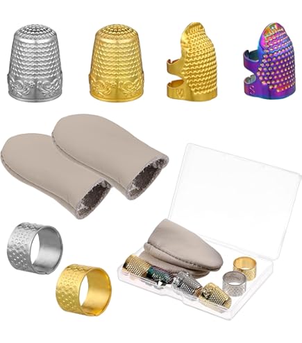 Schutz für deine Finger beim Nähen! Dieses umfangreiche 9-teilige Fingerhut-Set enthält alles, was du für sicheres und bequemes Handnähen brauchst. 6 Metall-Fingerhüte mit Anti-Rutsch-Oberfläche für harte Stoffe wie Jeans und Leder, 2 Leder-Fingerschützer für empfindliche Materialien wie Seide, und 1 verstellbaren Ring-Fingerhut, der auf jede Finger Größe passt. Die Metall-Fingerhüte haben spezielle Vertiefungen, die die Nadel sicher führen und ein Abrutschen verhindern. Die atmungsaktiven Leder-Fingerlinge verhindern schwitzige Finger bei langen Näharbeiten. Mit nur 9g pro Stück kaum spürbar, aber extrem schützend. Perfekt für Anfänger und Profis, für Sticken, Quilten oder einfaches Handnähen. Ein tolles Geschenk für alle kreativen Köpfe!