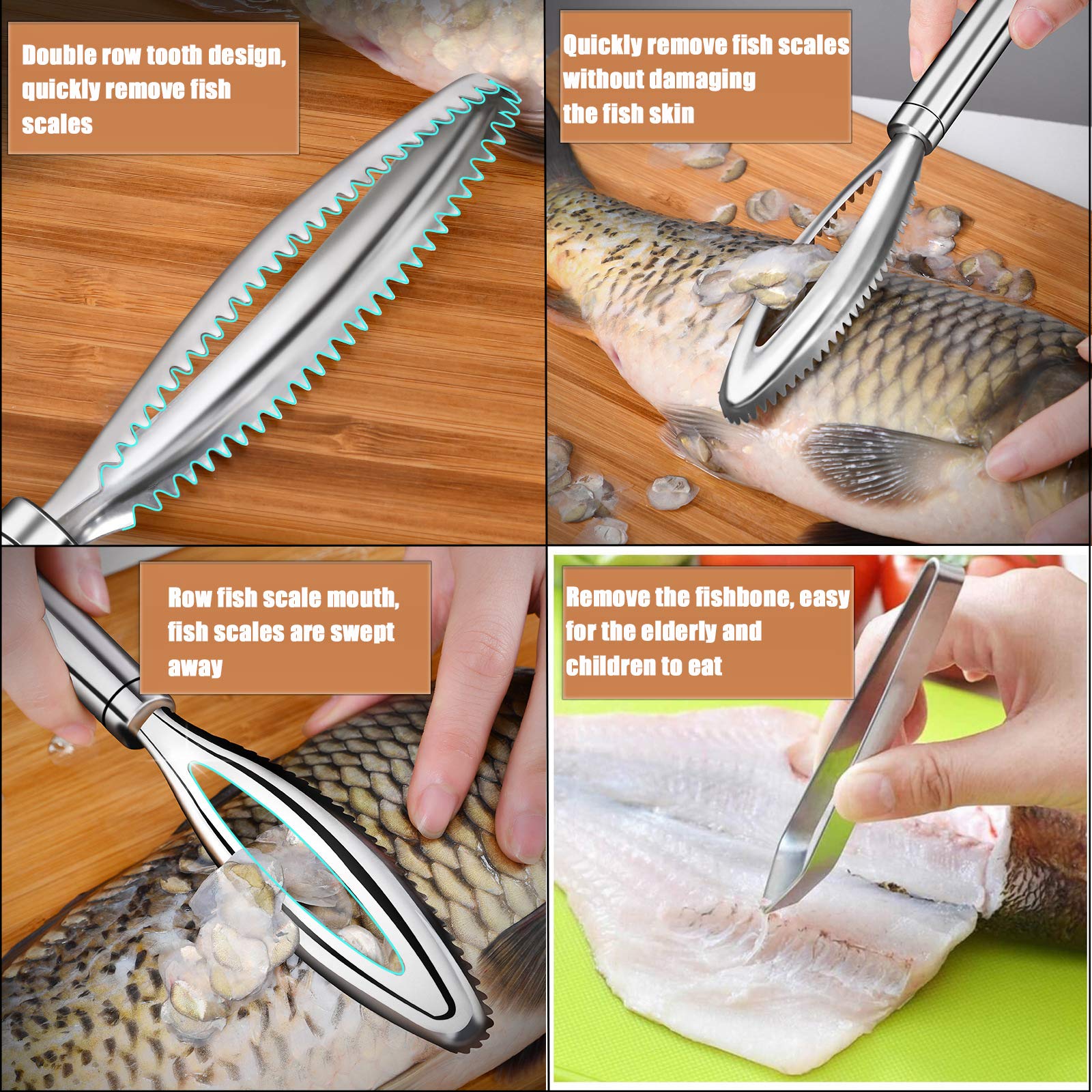 3-teiliges Fischentschupper Set - Edelstahl Fischschuppen Entferner Mit Haken