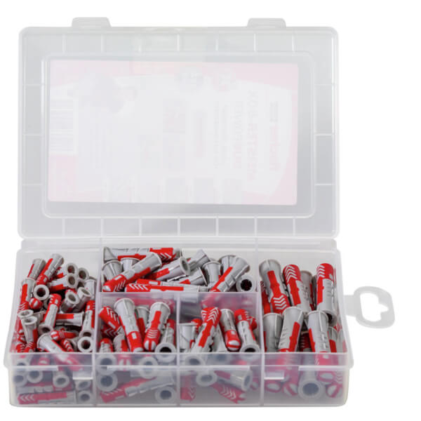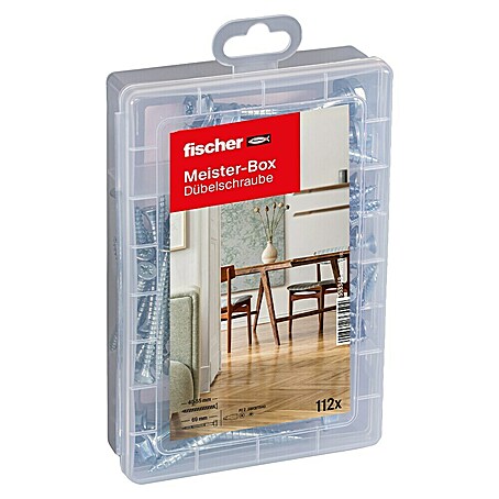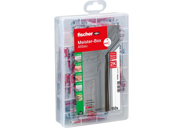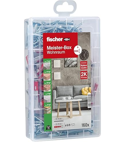 Perfekte Ausstattung für alle Befestigungen im Haus! Die fischer Meister-Box Universal enthält 150 Teile - genau das, was du als Heimwerker wirklich brauchst. Mit UX-Universaldübeln in 6x35mm und 8x50mm plus passenden Senkkopfschrauben. Der geniale UX-Dübel passt sich automatisch dem Baustoff an - ob Vollwand oder Hohlraum, er findet immer den richtigen Halt. Super für Bilder, Regale, Lampen oder Dunstabzugshauben in Beton, Ziegel, Gips und mehr. Die praktische Box aus schlagfestem Kunststoff hat einen transparenten Deckel, sodass du immer sofort siehst, was noch da ist. Alles schön sortiert und griffbereit für deine nächsten DIY-Projekte. Egal ob du in der Küche, im Wohnzimmer oder Bad was befestigen willst - mit diesem Set bist du bestens ausgerüstet. Fische Qualität made in Germany, die Profis vertrauen und die für Heimwerker perfekt ist. Einfach die richtige Größe nehmen, Loch bohren und fest damit rechnen, dass es hält!