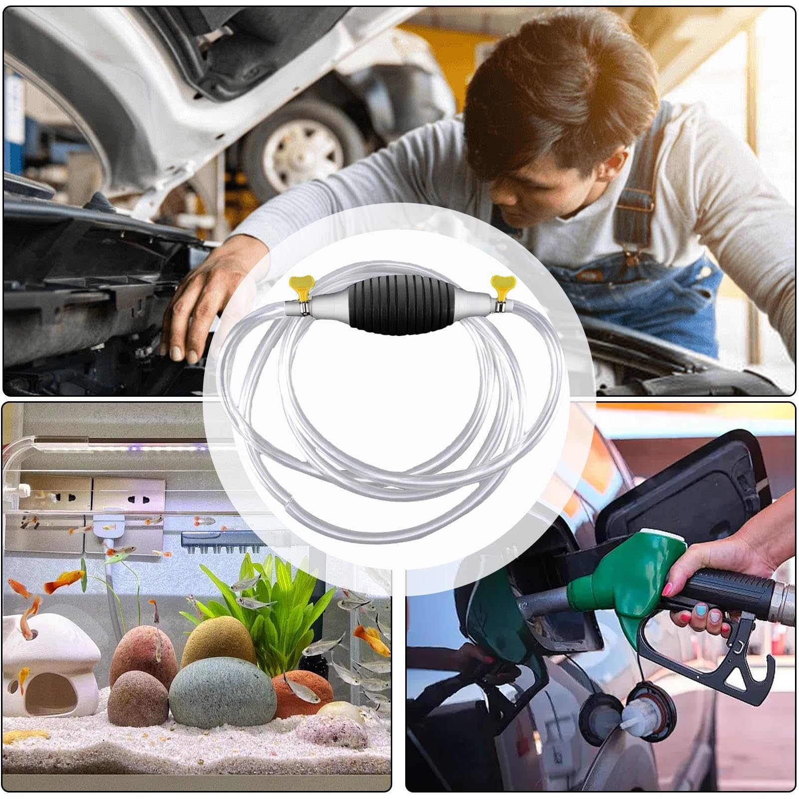 Flüssigkeiten umfüllen war noch nie so einfach! Mit dieser handlichen Siphonpumpe kannst du Öl, Wasser oder Reinigungsmittel problemlos von einem Behälter in den anderen pumpen. Einfach die Pumpe ein paar Mal drücken und schon fließt die Flüssigkeit - bis zu 6,5 Liter pro Minute! Die Pumpe ist aus robustem ABS-Kunststoff gefertigt und wiegt nur 60 Gramm. Super praktisch für die Autowerkstatt, den Garten oder unterwegs. Kein Herumgeschütte mehr, kein Verschütten - einfach sauber und effizient umfüllen. Kompakt genug für jeden Werkzeugkasten und immer griffbereit wenn du sie brauchst. Egal ob du Öl wechseln willst oder Wasser umfüllen musst - mit dieser Pumpe geht's easy. Einfach mal ausprobieren - du wirst sie lieben!