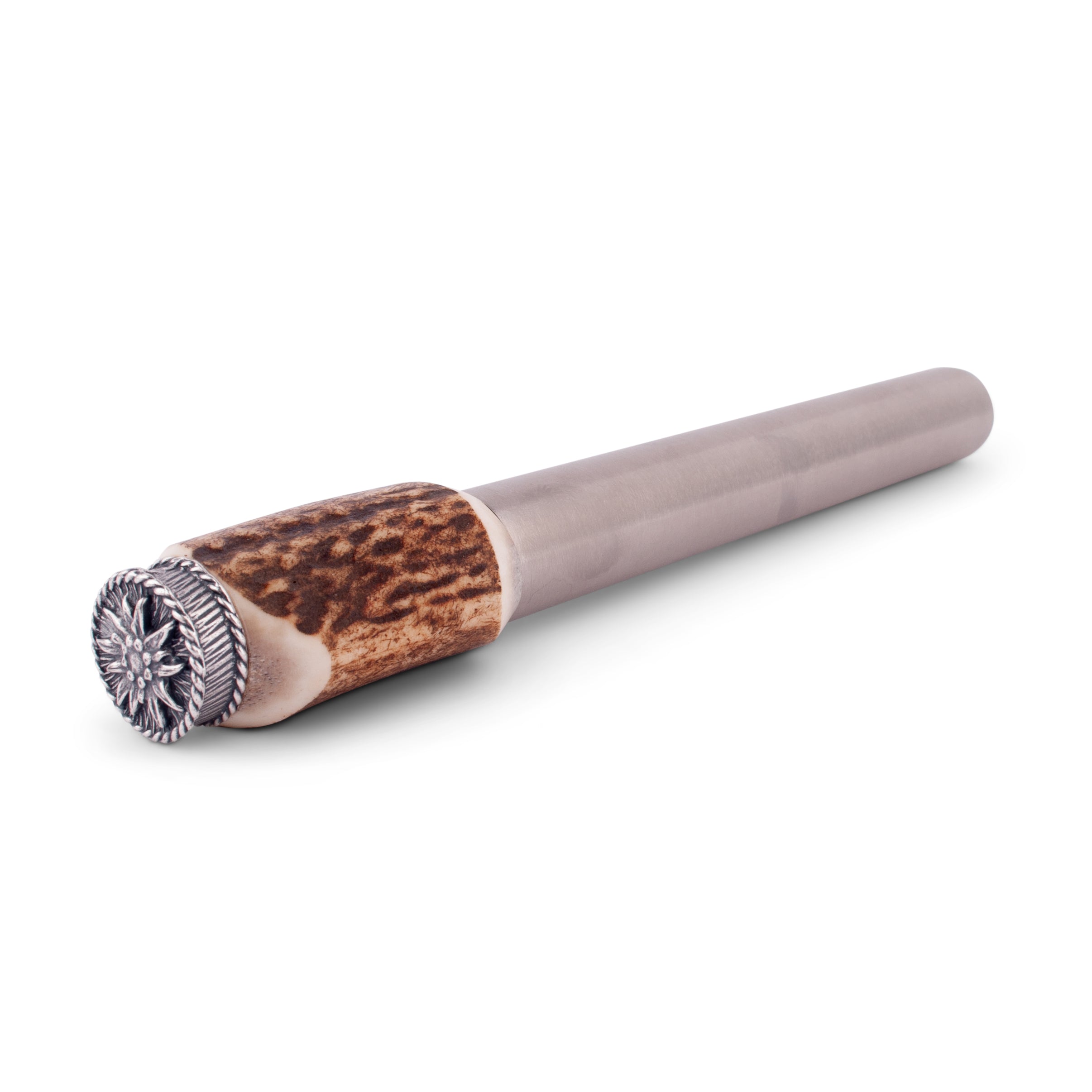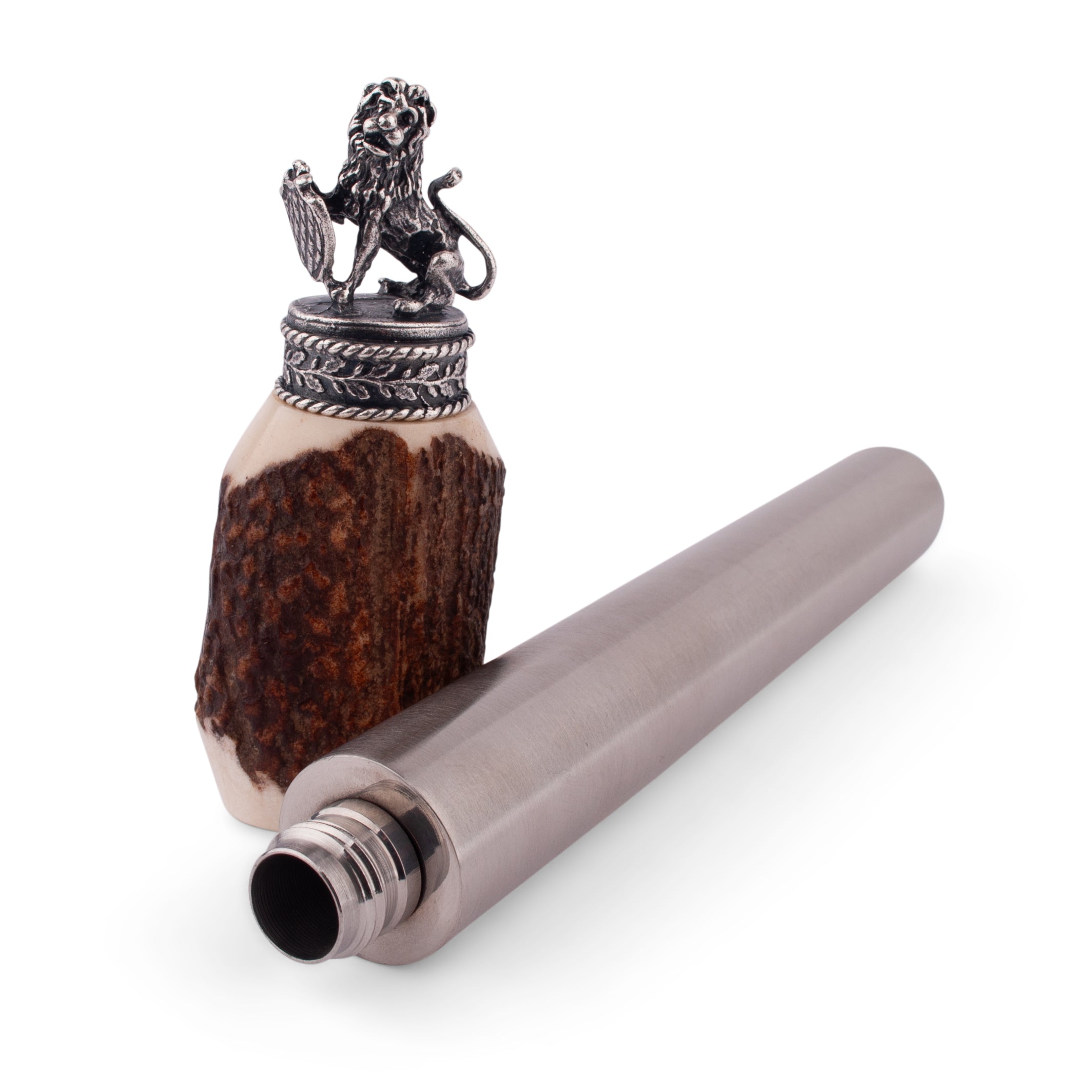 Auf zum Oktoberfest! Dieser Hirschhorn-Lederhosen-Flachmann mit Wolpertinger-Motiv ist der absolute Hit. Mit Original-Hirschhorn-Verschluss und 4cl Fassungsvermögen passt er perfekt in deine Lederhosentasche. Da wo Hirschfänger verboten sind, ist dieser Flachmann die perfekte Alternative für dein Verdauungsschnapserl. Made in Germany in massiver, hochwertiger Verarbeitung - ca. 20-22cm lang und ein echter Hingucker. Jedes Hirschhorn ist ein Unikat, also kann's leichte Abweichungen in Form und Farbe geben. Aber genau das macht's doch besonders, oder? Prost!