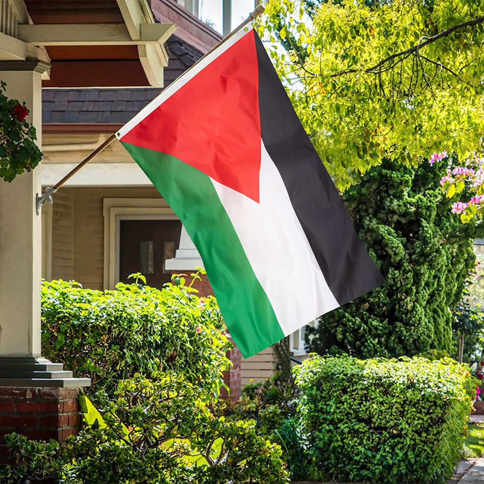 Zeige deine Unterstützung mit dieser hochwertigen Palästina-Flagge! Die 150x90cm große Fahne aus robustem Polyester weht schön im Wind und die metallenen Ösen machen das Aufhängen super einfach. Im Set sind 50 verschiedene Palästina-Aufkleber dabei - die kannst du überall anbringen: auf Laptops, Wasserflaschen, Fahrrädern oder Autoheckscheiben. Die Aufkleber sind wasserfest, UV-beständig und lassen sich rückstandsfrei entfernen. Perfekt für Demonstrationen, politische Veranstaltungen oder um deine Solidarität zu zeigen. Ob im Garten, am Fenster oder als Wanddekoration - diese Flagge macht überall eine gute Figur!