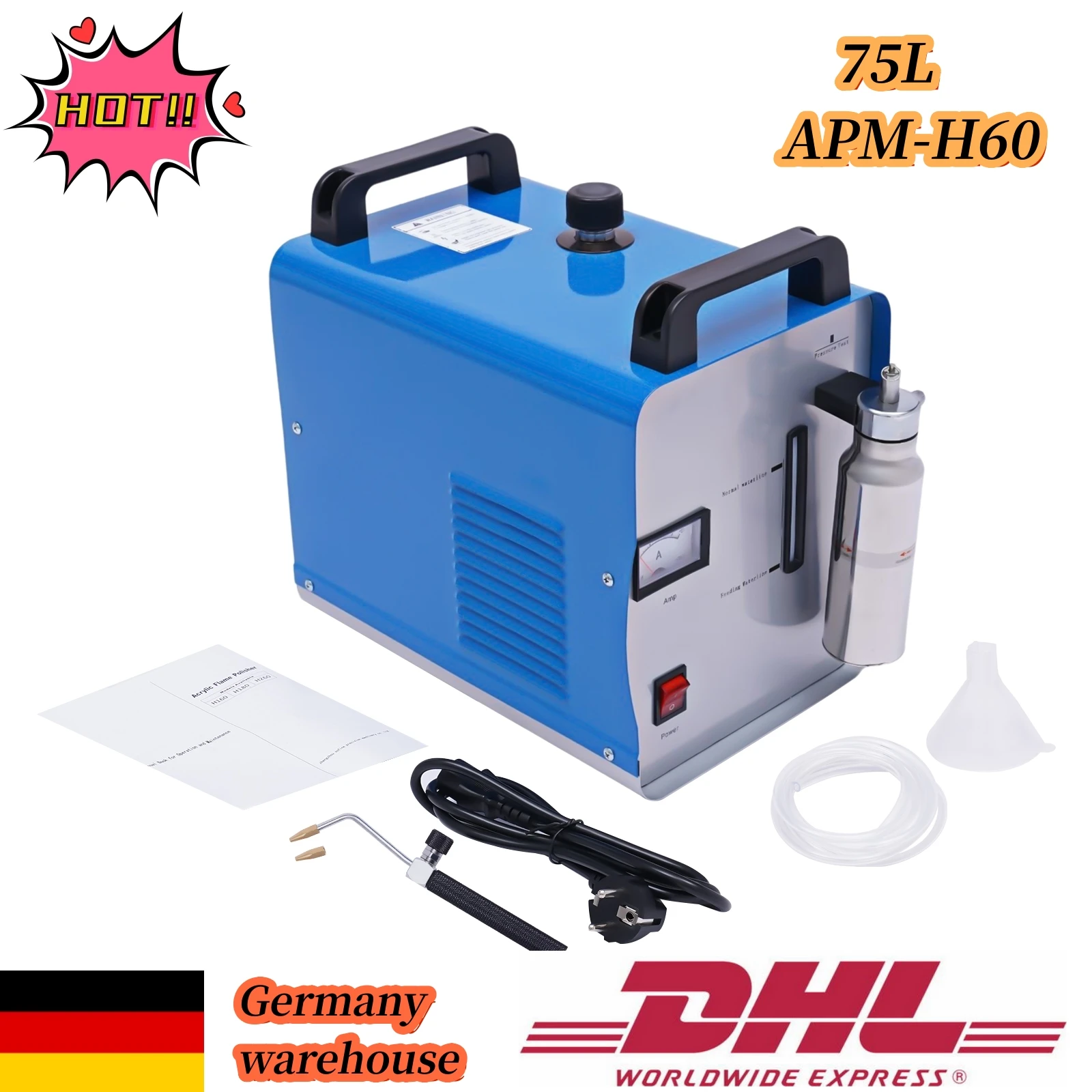 Professionelles Polieren von Acryl war noch nie so einfach! Diese HHO Flammpoliermaschine erzeugt durch Wasserelektrolyse Sauerstoff und Wasserstoff und erreicht eine Flammentemperatur von bis zu 2800°C. Mit einer Gasproduktion von 95L/h und 400W Leistung ist sie effizient und sparsam im Verbrauch. Das Gerät arbeitet mit 230V, wiegt 9kg und hat Abmessungen von 480x280x360mm. Die Verbrennung erzeugt nur Wasserdampf - umweltfreundlich und rückstandsfrei. Perfekt fürs Polieren von Acryl im Kunsthandwerk, Modellbau oder für kreative Projekte. Achtung: Elektrolytpulver nicht im Lieferumfang enthalten.