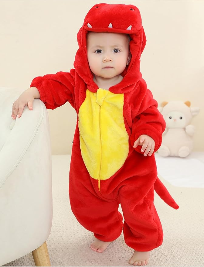 Oh, wie süß! Dieser kuschelige Dinosaurier-Strampler verwandelt dein Baby in ein niedliches Urzeit-Tier. Aus weichem Flanell mit Fleece-Futter ist er perfekt für kalte Herbst- und Wintertage. Der praktische Ganzkörper-Reißverschluss macht das An- und Ausziehen super einfach, während die elastischen Bündchen an Ärmeln und Beinen für perfekten Kälteschutz sorgen. Mit der integrierten Kapuze und dem niedlichen 3D-Dino-Design ist dieser Overall nicht nur ultra-gemütlich, sondern auch ein absoluter Hingucker! Ideal für krabbelnde Babys und Kleinkinder bis 36 Monate. Perfekt geeignet für Spaziergänge, gemütliche Tage zu Hause oder als Kostüm für Mottopartys. Ein Must-Have für alle kleinen Dino-Fans - wärmend, weich und unwiderstehlich niedlich!