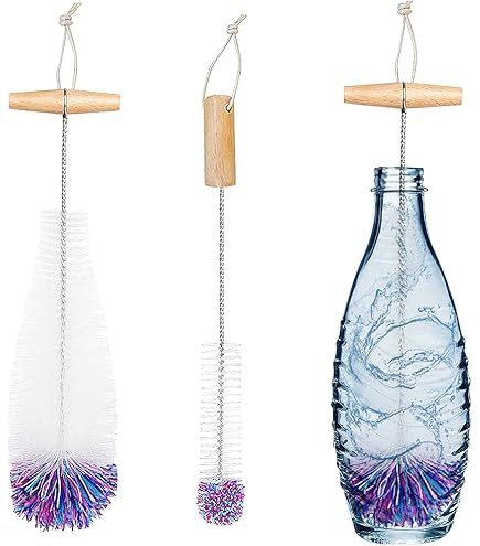 Puh, das Reinigen von Sodawasser-Flaschen kann echt nerven, oder? Besonders der Boden und die engen Stellen sind kaum zu erreichen. Aber mit unserer 33 cm langen Flaschenbürste gehört das Problem der Vergangenheit an! Die Bürste kombiniert kratzerfreie Nylon-Borsten mit einem weichen Schwamm - so bekommst du selbst hartnäckige Rückstände mühelos weg, ohne deine Flaschen zu beschädigen. Der rostfreie Edelstahlstab (304er Qualität) und der robuste Holzgriff sorgen für Langlebigkeit. Der ergonomische 90° Griff liegt super in der Hand und gibt dir genug Hebelkraft für eine gründliche Reinigung. Egal ob Sodawasser-Glasflaschen, Kunststoffflaschen oder normale Getränkeflaschen - diese Bürste meistert alles! Tipp: Wenn die Bürste nach dem Auspacken etwas zusammengedrückt ist, einfach 10 Minuten in warmes Wasser legen - dann sieht sie wieder wie neu aus! Und vergiss nicht, den Schwamm vor dem ersten Gebrauch anzufeuchten, dann gleitet er viel leichter in den Flaschenhals. Mit dieser Bürste macht Putzen tatsächlich Spaß - versprochen! Deine Flaschen werden so sauber, dass du sie ohne Bedenken wieder befüllen kannst. Perfekt für alle, die ihre Sodastream oder andere Sprudelgeräte regelmäßig nutzen.