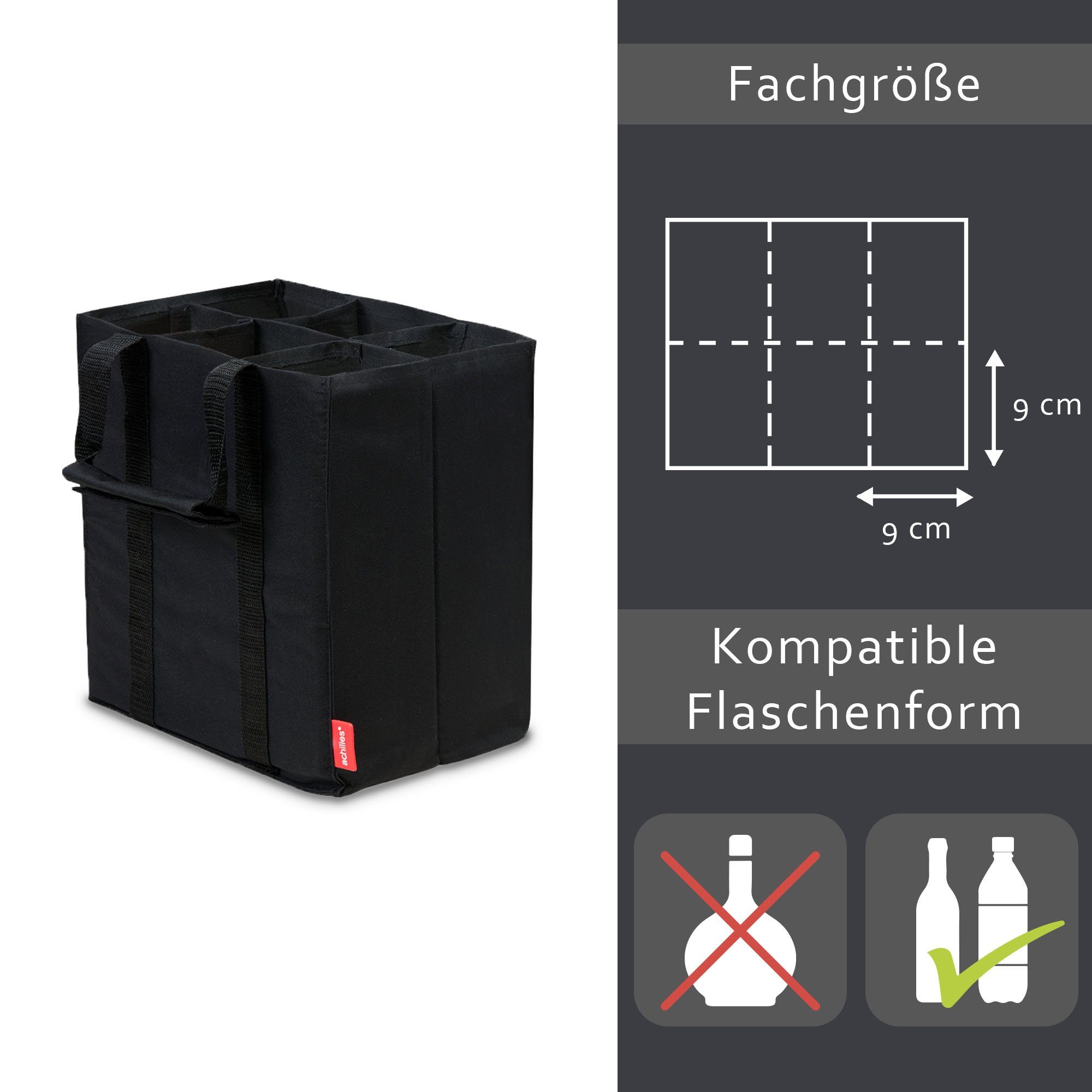 Perfekt für Picknicks, Partys und Einkäufe! Diese praktische Flaschentasche aus strapazierfähigem Vliesstoff bietet Platz für bis zu 6 Flaschen. Mit separaten Fächern verhindert sie, dass die Flaschen während des Transports aneinander stoßen und beschädigt werden. Die stabilen Tragegriffe sorgen für bequemen Transport, egal ob du Wein, Bier, Wasser oder andere Getränke transportierst. Aus umweltfreundlichem Polypropylen gefertigt, ist die Tasche wiederverwendbar und kann bei Bedarf einfach gereinigt werden. Mit den Maßen 31x25x18 cm ist sie kompakt genug für die Aufbewahrung, aber geräumig genug für deine Getränkevorräte. Wenn sie nicht gebraucht wird, lässt sie sich platzsparend zusammenfalten. Vielseitig einsetzbar nicht nur für Flaschen, sondern auch für Dosen, Snacks oder andere Utensilien. Die schwarze Farbe sieht zudem stylisch aus. Ein unverzichtbarer Helfer für jeden Anlass - ob Familienfeier, Grillabend oder spontaner Ausflug!