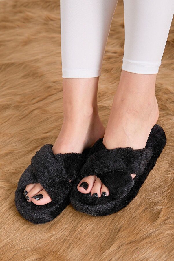 TENDYCOCO Baumwoll-Hausschuhe - Flauschige Pantoffeln Für Damen In Schwarz