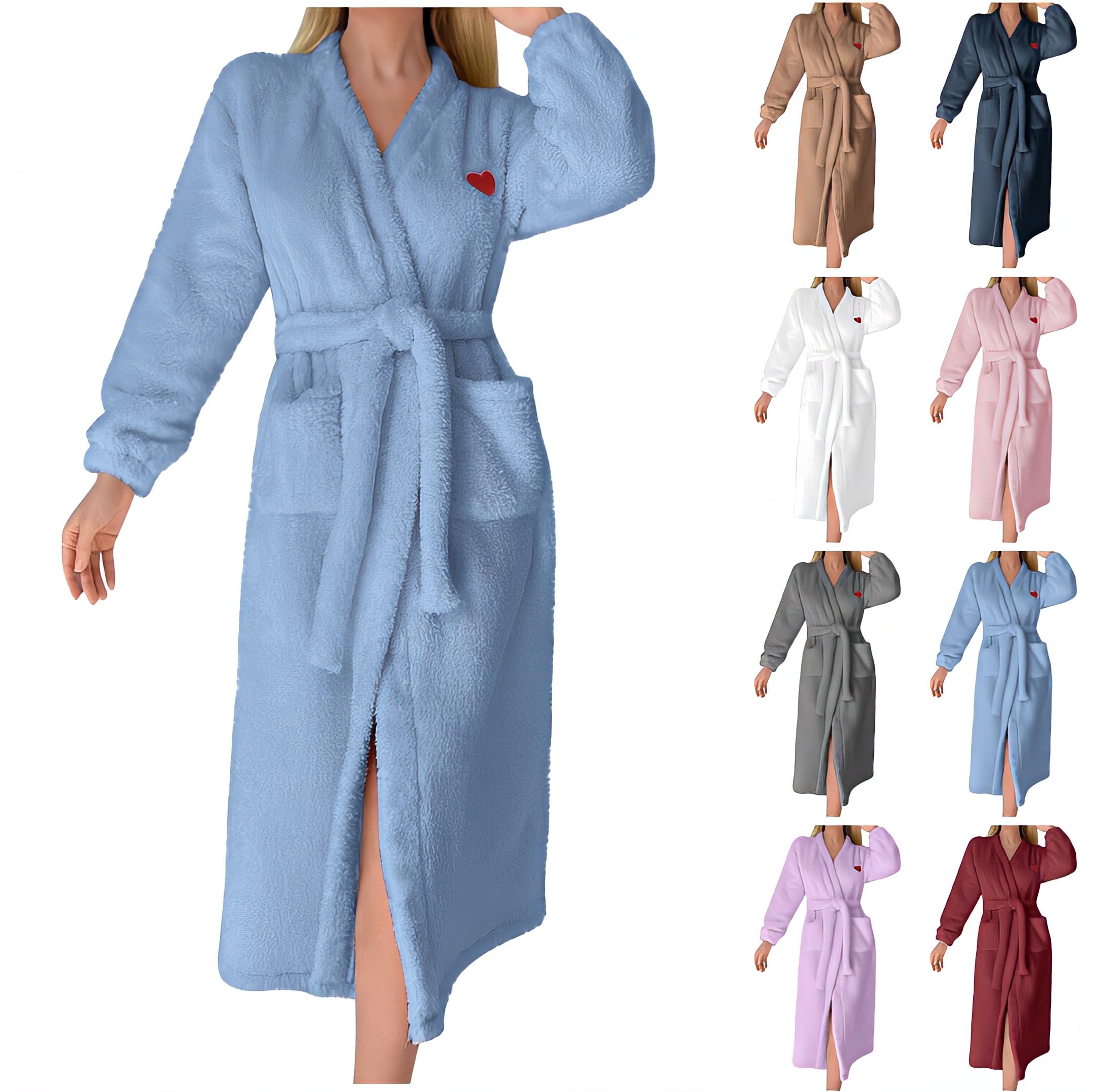 Damen Bademantel Mit Herzmotiv - Flauschiger Frottee Morgenmantel Mit Taschen