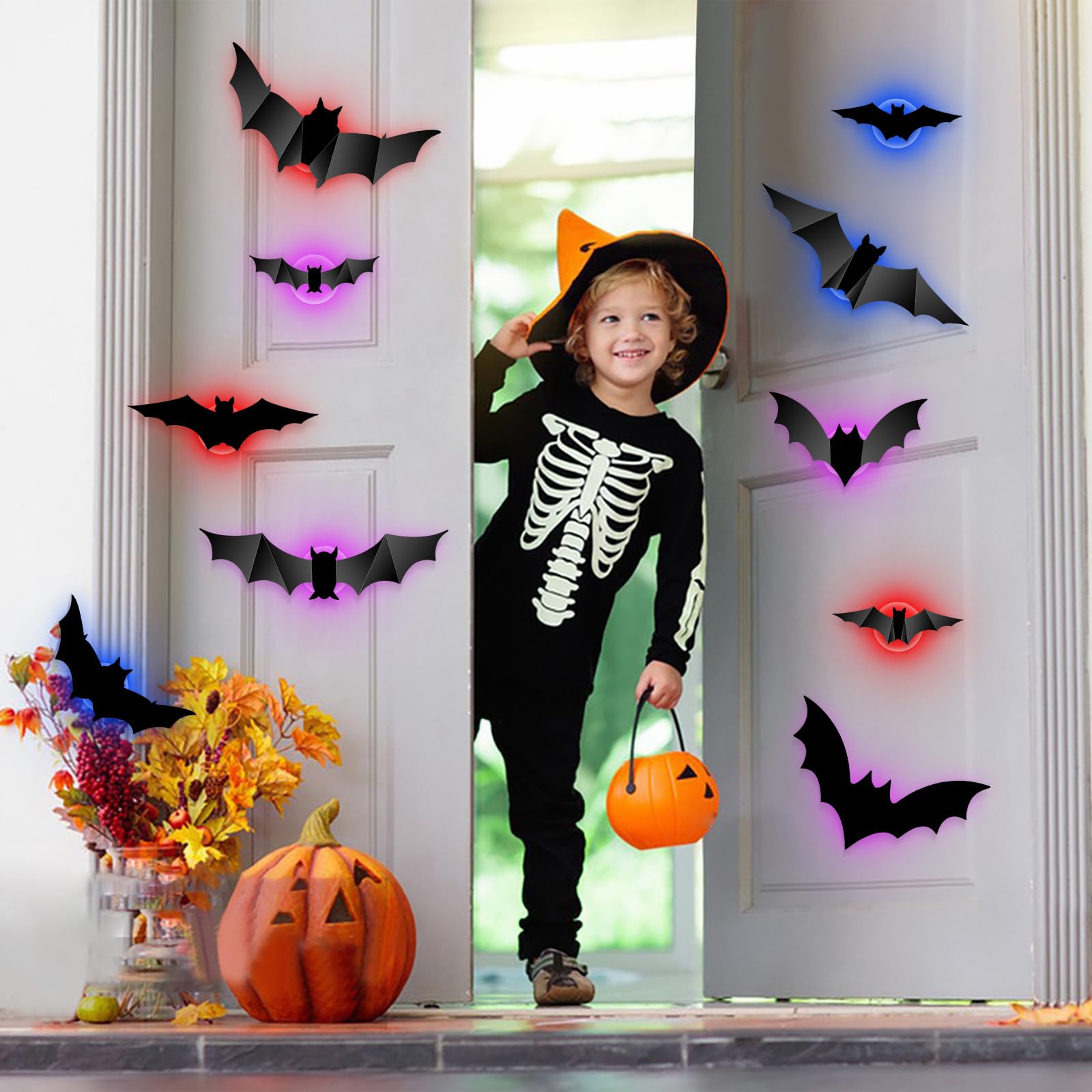 24x 3D Fledermaus LED Aufkleber - Leuchtende Halloween Deko Für Wände