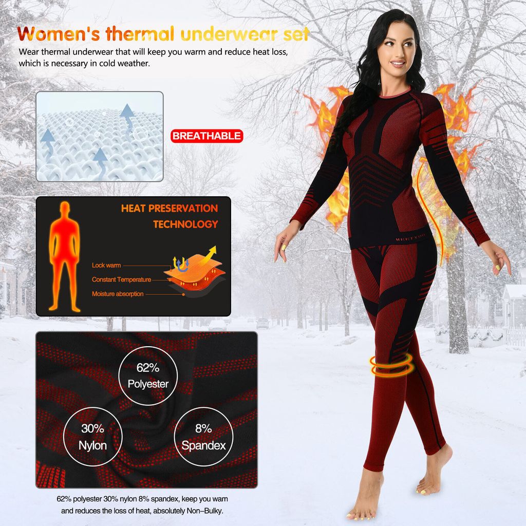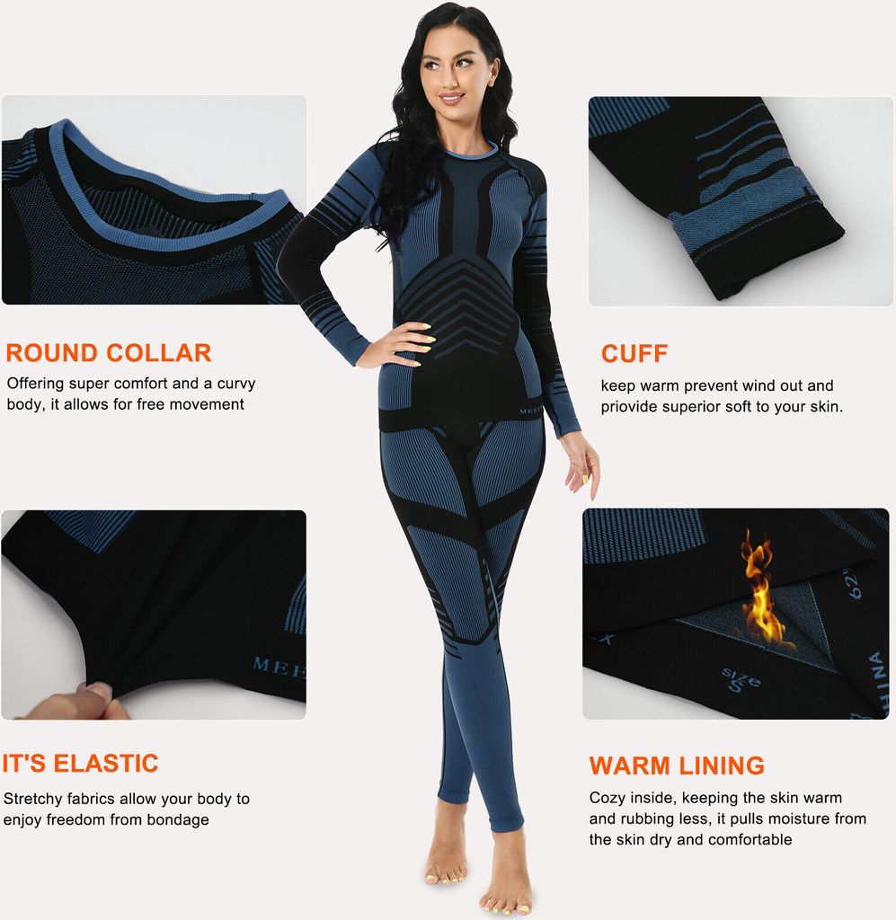 AMZSPORT Damen Thermo Unterwäsche Set - Fleece Gefüttert Für Ski & Winter