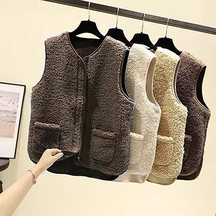 Fleece Weste Damen Teddy-Fleece - Ärmellose Plüschweste Mit Taschen