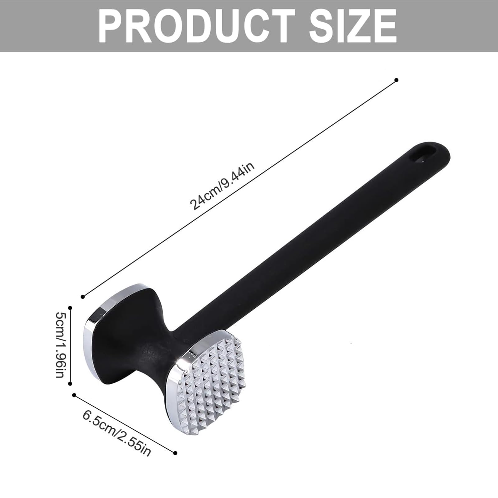 Perfekte Schnitzel? Mit diesem Fleischklopfer klappt's! Aus Aluminiumlegierung mit Edelstahlgriff - robust und langlebig. Doppelseitiges Design: eine Seite glatt für gleichmäßiges Klopfen, eine Seite mit Noppen zum Zartmachen. So dringen Gewürze besser ein und das Fleisch wird super zart. Ideal für Huhn, Steak, Rind - aber auch für Nüsse, Eis oder Knoblauch. Maße: 9,44 x 2,6 x 1,96 Zoll - liegt gut in der Hand. Mit Aufhänge-Loch - praktisch für die Aufbewahrung. Einfach zu reinigen - per Hand oder in der Spülmaschine. Für BBQ, Küche oder Grill-Partys - ein echter Allrounder. Macht Fleischzubereitung zum Kinderspiel. Hol ihn dir und genieß zarte, saftige Schnitzel wie vom Profi!