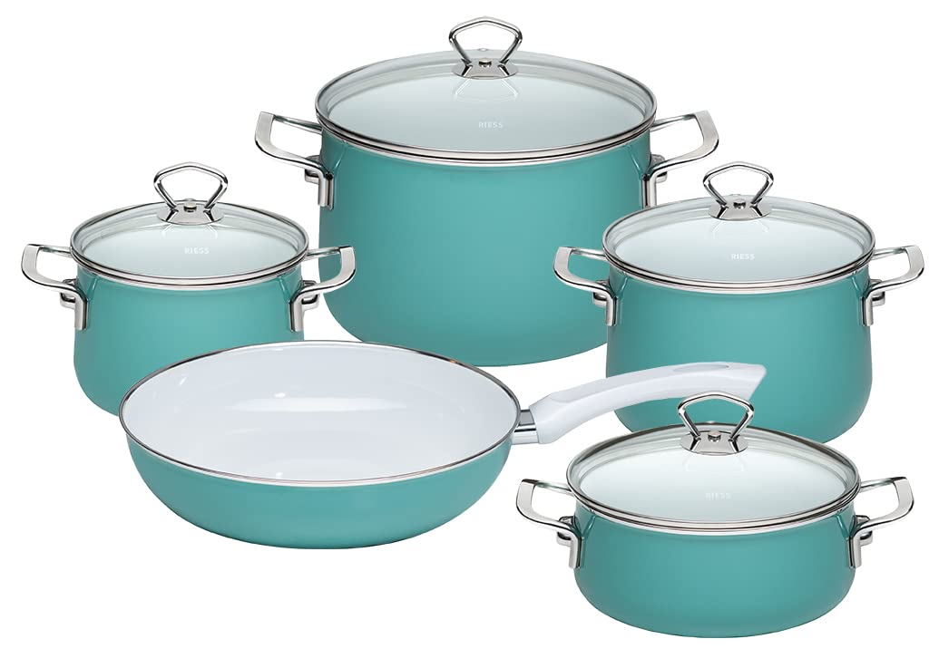 Riess Emaille Fleischtopf 6,5 Liter - NOUVELLE AQUAMARIN | Für Induktion | Ø24 Cm