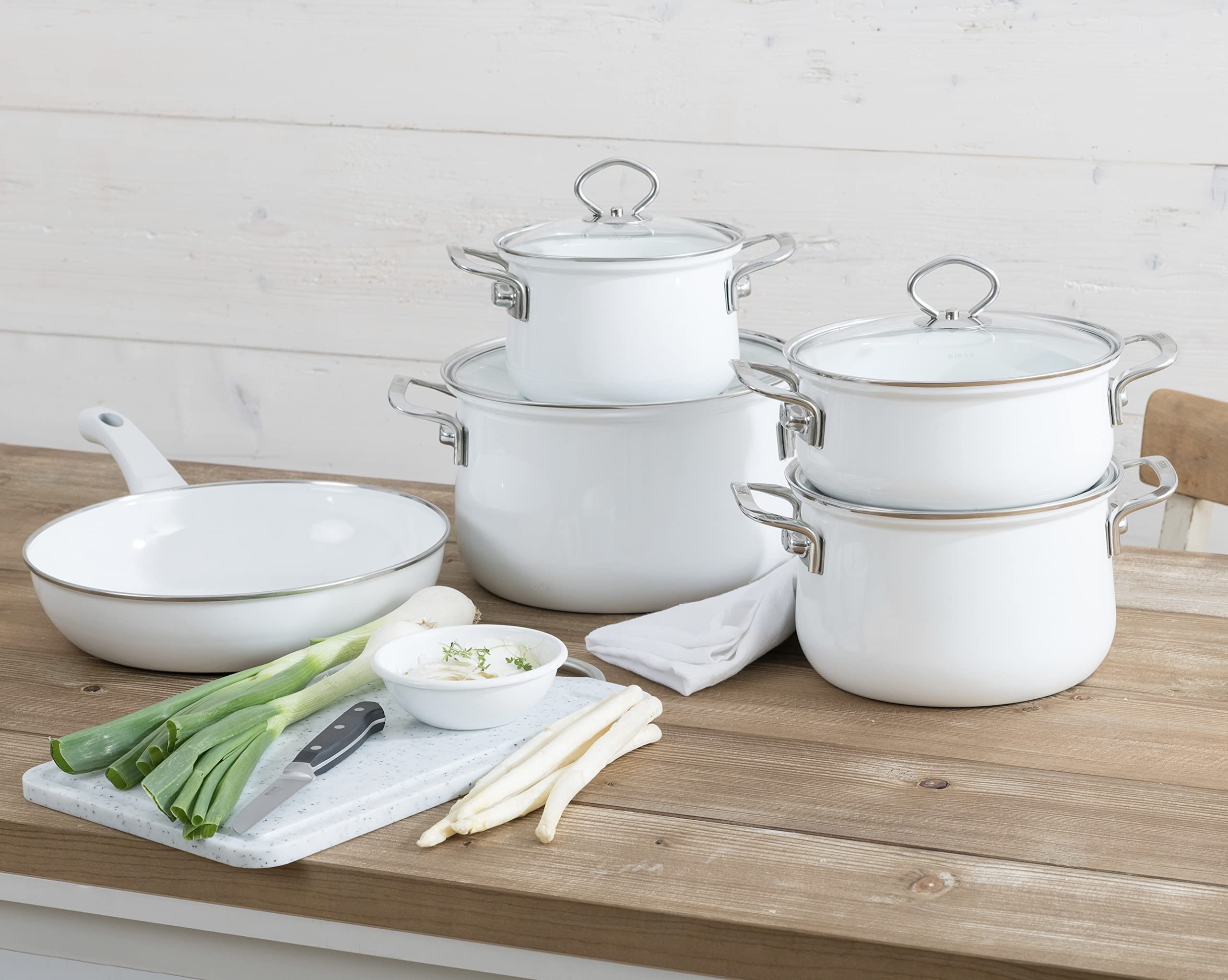 Echter Klassiker aus Österreich - der Riess Emaille-Fleischtopf! 6,5 Liter Inhalt, 24 cm Durchmesser, 23,5 cm hoch. Perfekt für deftige Eintöpfe, Suppen oder Sonntagsbraten. Die extra starke Emaille-Beschichtung ist absolut schadstofffrei, kratzfest und superleicht zu reinigen. Funktioniert auf allen Herdarten inklusive Induktion. Seit 1922 wird bei Riess Emaille-Geschirr in bester Handwerksqualität gefertigt. Nicht nur praktisch, sondern auch ein echter Hingucker in deiner Küche - die Aquamarin-Farbe ist einfach traumhaft!