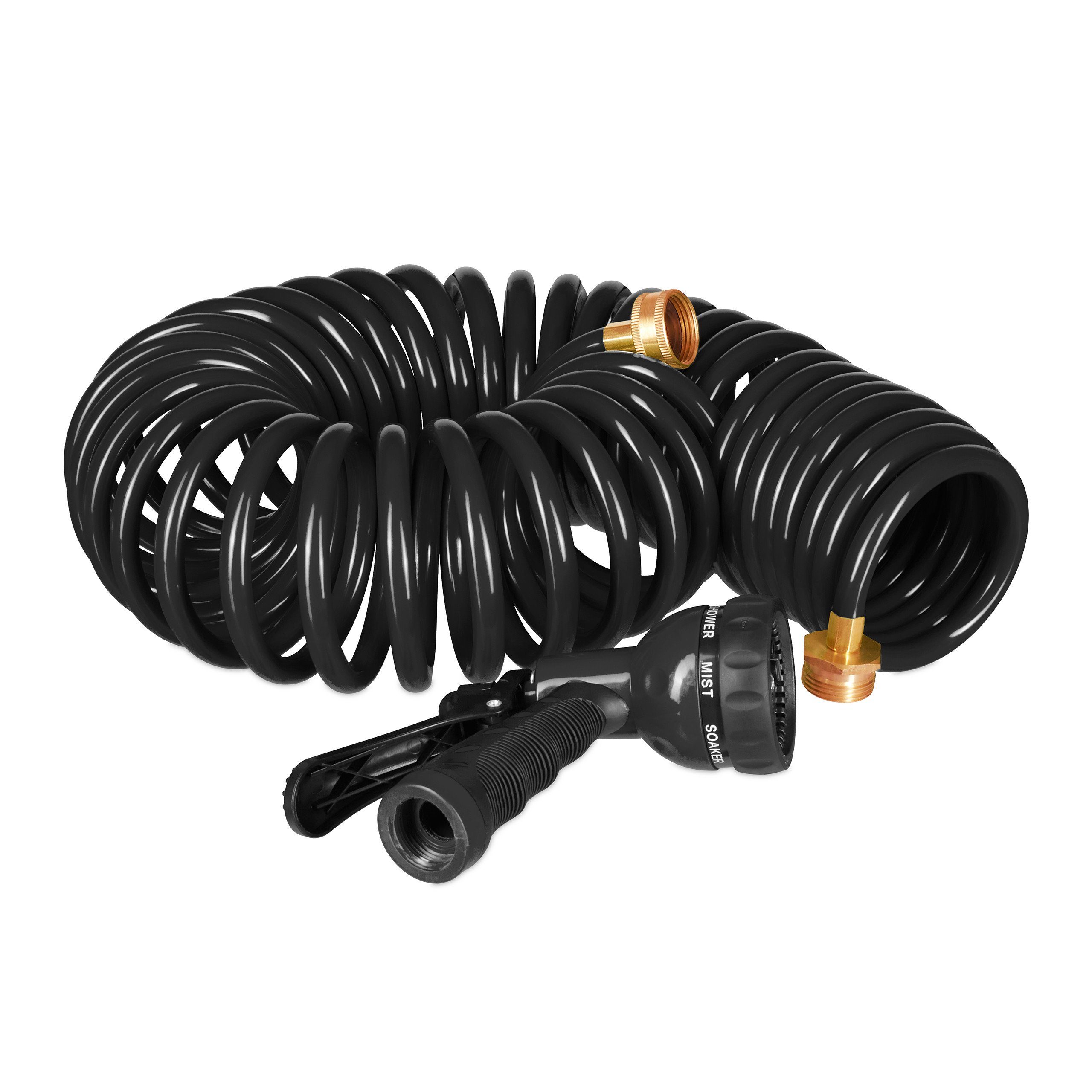 Relaxdays Spiralschlauch 10m - Flexibler Gartenschlauch Mit Brause & 7 Strahlarten Für Garten & Balkon