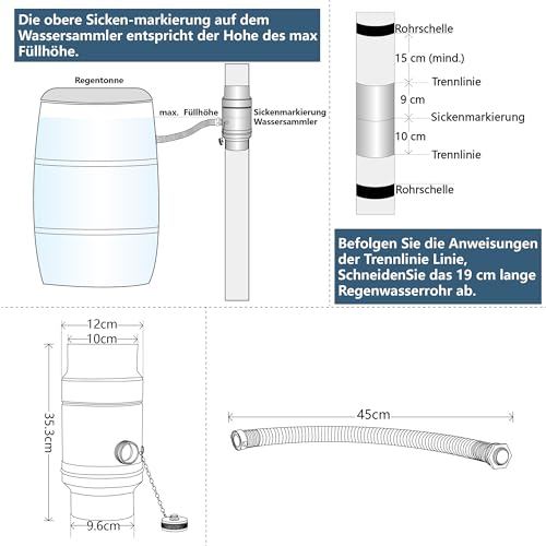 Regenwasser ist viel zu schade, um es einfach versickern zu lassen! Mit diesem praktischen Regenwassersammler machst du aus jedem Schauer kostenloses Gießwasser für deinen Garten. Das Komplett-Set enthält alles, was du brauchst: Kronenbohrer, Behälteranschlussdichtung und einen flexiblen Schlauch (50-100 cm). Einfach am Fallrohr (Ø 70-110 mm) installieren - der Abstand zur Wand ist egal! Das intelligente Überlaufdesign leitet überschüssiges Wasser automatisch ab, keine Sorge vor Überflutungen. Ideal für Dächer bis 90 m². Und das Beste: Du kannst zwischen Sommer- (Sammeln) und Wintermodus (Umleiten) wechseln - ohne Werkzeug! Aus wetterbeständigem PVC, hält auch britischem Wetter stand. Umweltfreundlich und spart bares Geld - was will man mehr?