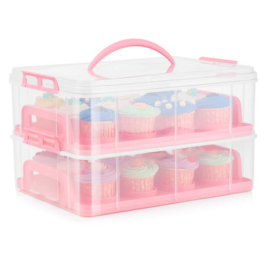 Flexzion Cupcake-Träger 24 Fächer - 2-etagige Gebäckbox Transparent