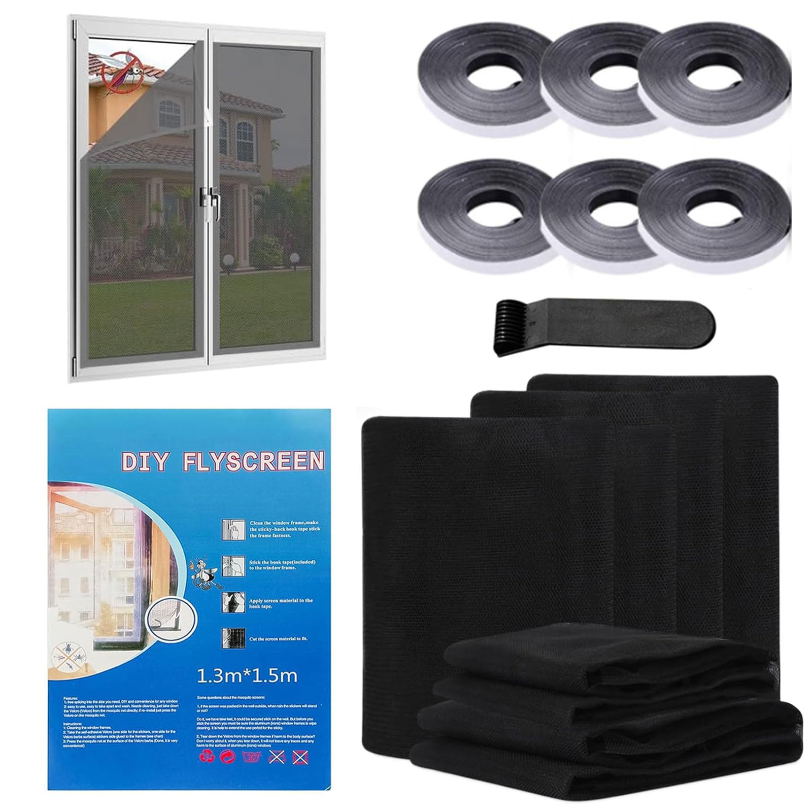 Fliegengitter Fenster 6-teilig - Selbstklebend 130x150cm Ohne Bohren