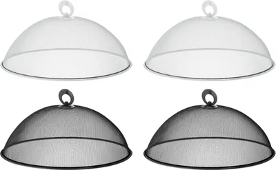 Puh, keine lästigen Insekten mehr am Buffet! Diese 4 Fliegenhauben sind super praktisch! Mit 32cm Durchmesser decken sie ganze Platten ab! Aus feinem Netzmaterial - Insekten bleiben draußen, aber du siehst trotzdem was drin ist! Einfach wie ein Regenschirm aufspannen - total easy! Nur 42 Gramm leicht und faltbar - perfekt für unterwegs! Die hübsche Spitzenkante sieht auch noch gut aus! Leicht zu reinigen, einfach mit Seifenwasser abwaschen! Ob für Gartenparty, Grillen, Picknick oder Catering - damit bleibt dein Essen geschützt! Einfach ein must-have für jeden Outdoor-Event!