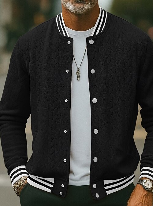 Stylish durch alle Jahreszeiten! Diese Fliegerjacke im Bomber-Stil ist dein perfekter Begleiter für Frühling bis Herbst. Aus hochwertigem Polyester gefertigt, das pillingfrei, farbecht und formbeständig ist. Winddicht und atmungsaktiv - genau was man braucht! Mit praktischen Seitentaschen, Armlaschen und Innentaschen für all deine Sachen. Der Baseballkragen mit geripptem Saum und Ärmelbündchen sieht sportlich-elegant aus und passt sowohl zur Freizeit als auch zum Business Casual Look. Das hautfreundliche Material ist angenehm leicht und der durchgehende Reißverschluss vorne macht das An- und Ausziehen zum Kinderspiel. Perfekt für Arbeit, Reisen oder Stadtbummel - diese Jacke macht einfach immer eine gute Figur!