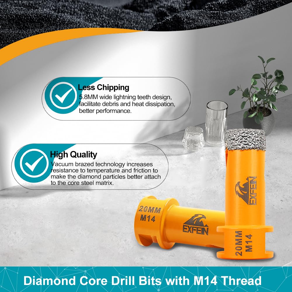 Dieser Diamantbohrer ist ein echter Profi für harte Materialien! Mit 6mm Durchmesser und M14-Gewinde passt er perfekt auf jeden Winkelschleifer. Die Vakuumlöt-Technologie garantiert extreme Langlebigkeit - hält viel länger als galvanisierte Bohrer! Ideal für Fliesen, Keramik, Porzellan, Marmor und Granit - bohrt saubere Löcher ohne Ausbrüche! Das integrierte Wachs schmiert und kühlt beim Trockenbohren - super praktisch wenn kein Wasser zur Hand ist! Mit 10mm Diamanthöhe und 60mm Gesamtlänge perfekt für die meisten Bohr-Arbeiten. Einfach einsetzen und loslegen - so macht Fliesenlegen Spaß! Perfekt für Heimwerker und Profis - bohrt sich einfach durch alles durch!