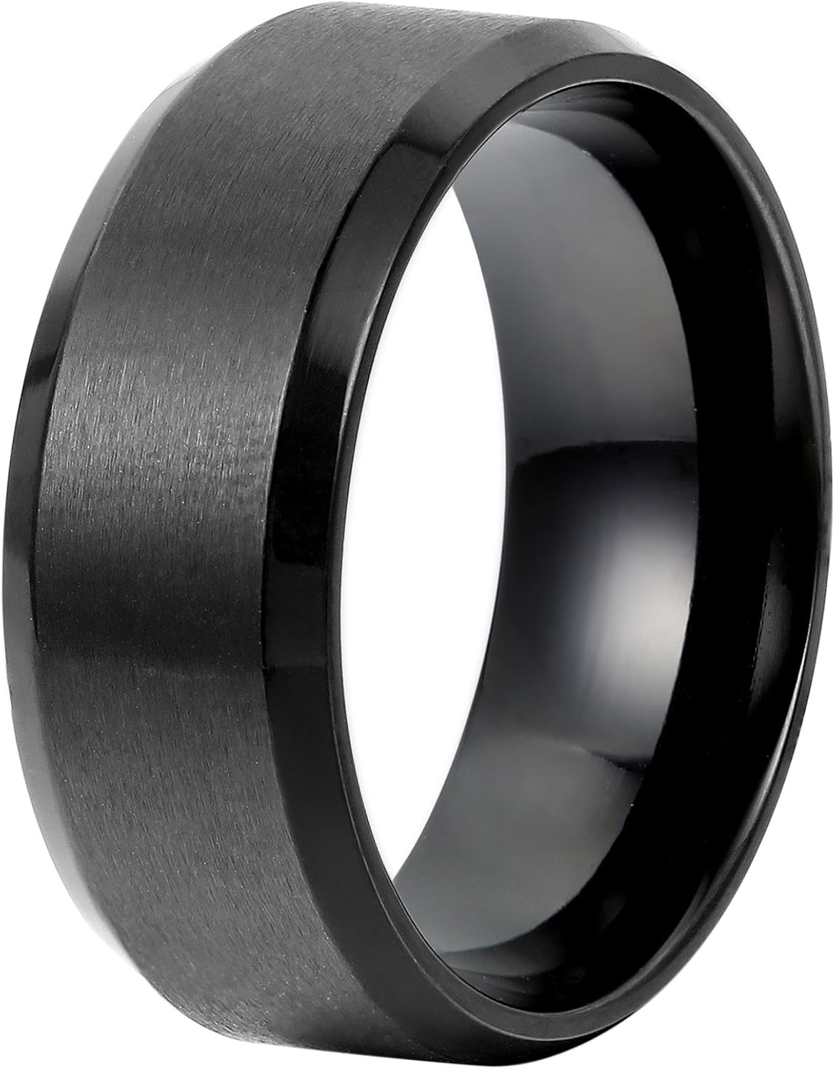 Flongo Herren Ring Edelstahl - Breiter Bandring Schwarz Rot Mit Glassteinen