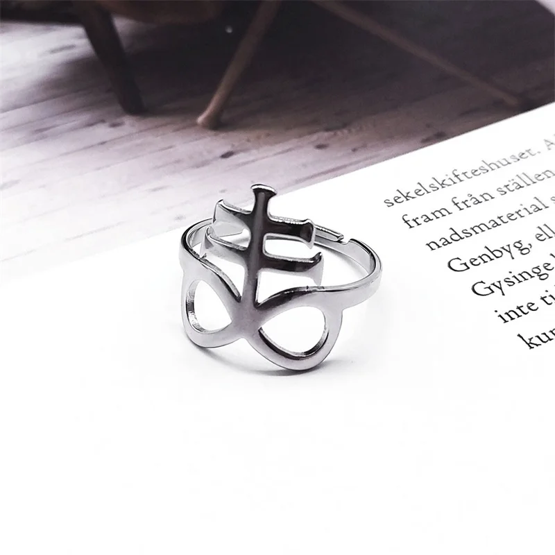 Flongo Satanische Ringe Set - 2 Stück Edelstahl Baphomet & Leviathan Kreuz Ringe Größe 54