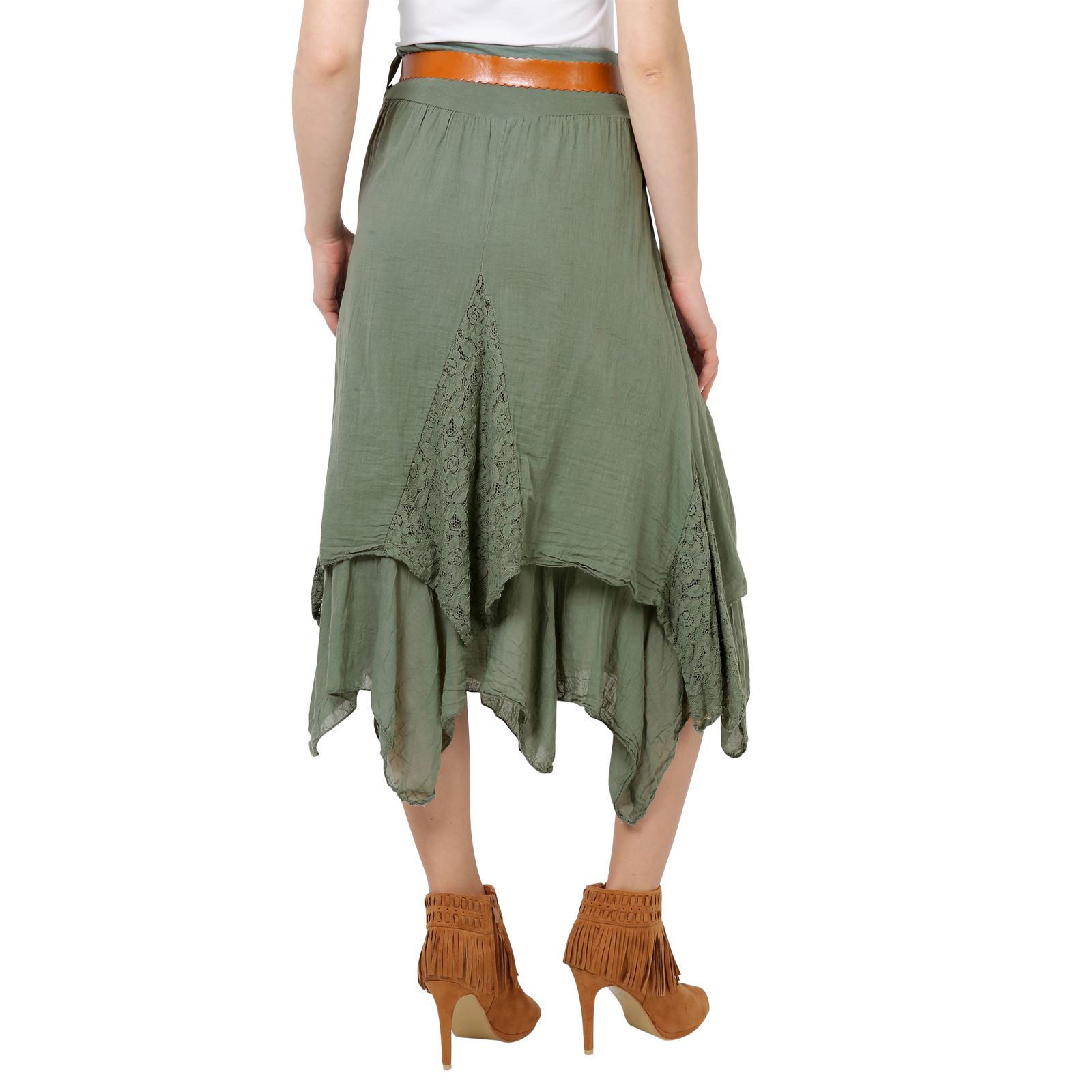 Damen Western Rock Maxi - Florale Spitze Häkel Rock Boho Style A-Linie