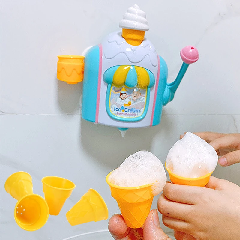 Badespielzeug Ice Cream Foam Maker | Badewannen Bubble Maker Mit Saugnäpfen | 4 Eistüten Inklusive
