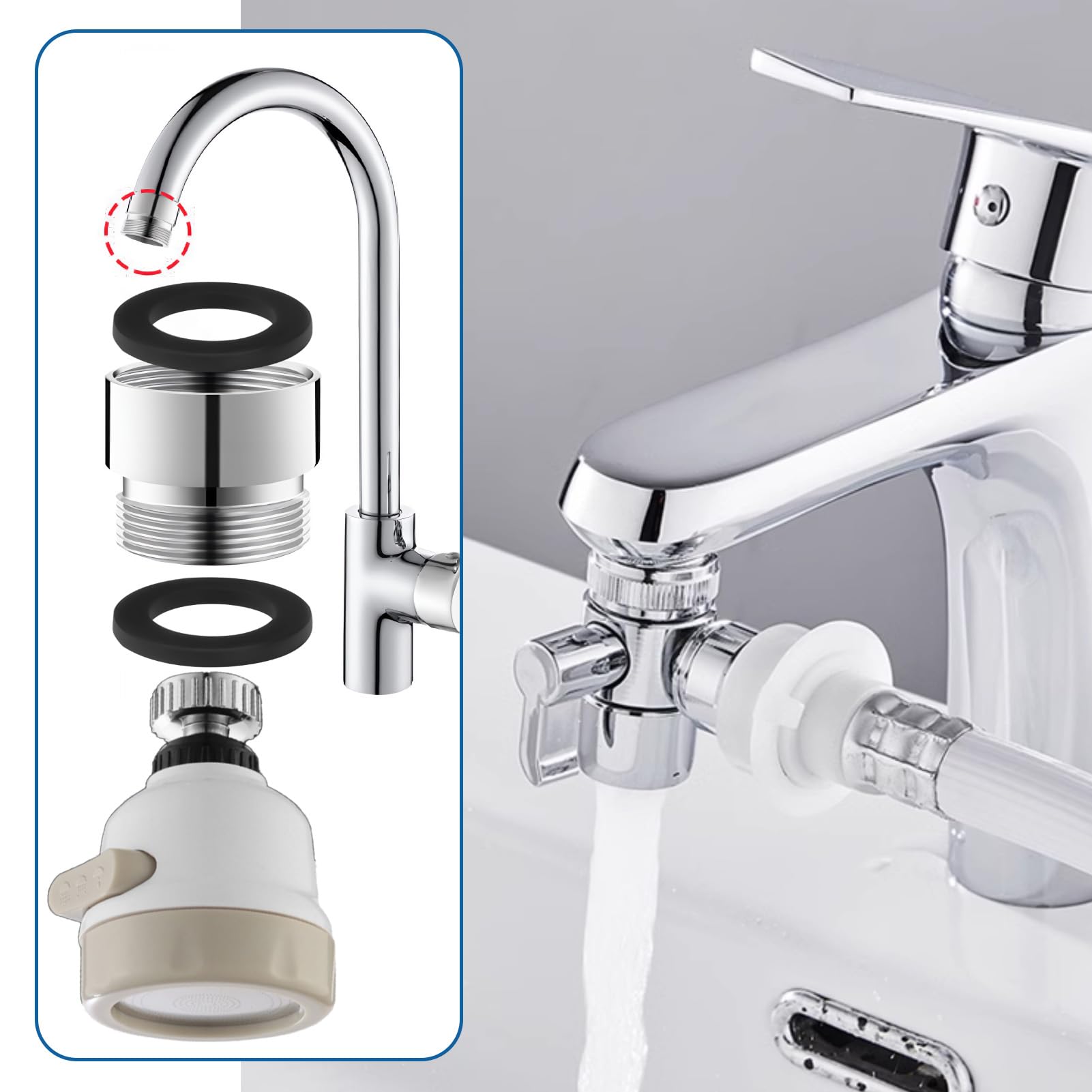 Die Installation ist kinderleicht: Einfach das 3/4 Zoll Innengewinde mit Unterlegscheibe auf den Wasserhahn schrauben und den Brauseschlauch auf das 1/2 Zoll Innengewinde. Kein Werkzeug nötig!
