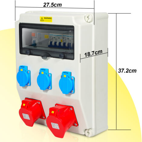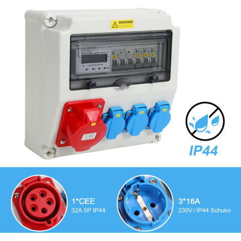 Sicherheit geht vor! Dieser Fogmiea Baustromverteiler mit FI-Schutzschalter ist dein zuverlässiger Partner auf jeder Baustelle. 5-polig mit 4x Schuko- und CEE-Steckdosen für 16A/32A.