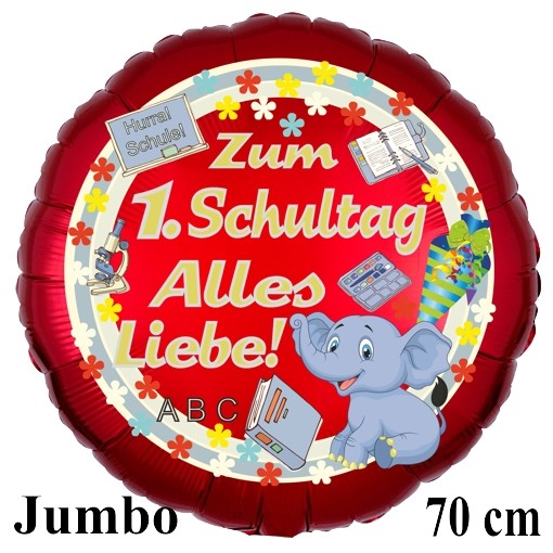 Der perfekte Begleiter für den großen Tag der Einschulung! Dieser blaue Folienballon mit dem coolen Raketen und Astronauten Motiv macht jedem Schulkind eine Freude. 'Auf zum Planeten Schule' steht da drauf - was für ein toller Spruch zum Schulstart! Der Ballon ist beidseitig bedruckt und sieht von allen Seiten super aus. Mit Helium befüllt schwebt er bis zu 7 Tage, mit Luft hält er sogar mehrere Wochen. Das praktische Selbstschließventil macht das Befüllen ganz einfach. Größe: etwa 43 cm vor dem Aufblasen, danach ca. 33 cm. Perfekt als Deko für die Einschulungsparty oder als Geschenk für das Schulkind. Übrigens: Hergestellt in den USA und in Deutschland bedruckt, also richtig gute Qualität! Die Verpackung ist aus Papier und kann später noch als Aufbewahrung verwendet werden. Häufige Fragen: Ja, der Ballon kann mehrmals mit Helium nachgefüllt werden. Nein, zuknoten musst du ihn nicht - das Ventil schließt sich automatisch. Bei kühleren Temperaturen zieht sich der Ballon etwas zusammen, das ist normal. Einfach ein fantastisches Teil für diesen besonderen Tag im Leben deines Kindes!
