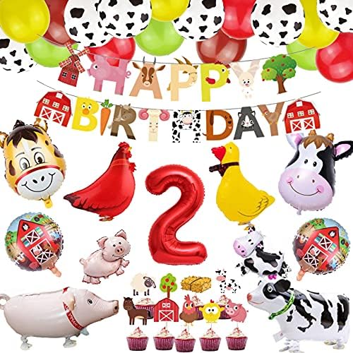 Bauernhof Tier Partydekoration 67-teilig - Folienballons & Cupcake Topper Für Kindergeburtstag