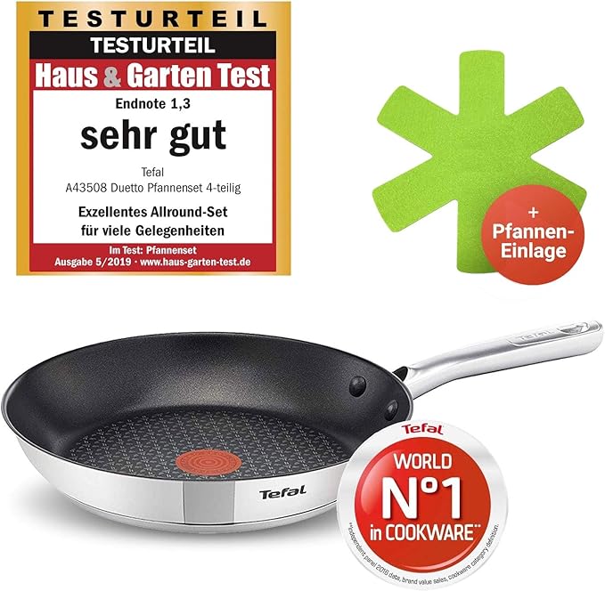 Dieses Tefal Natural Force Kochset ist ein Traum für jeden Hobbykoch! Im 5-teiligen Set findest du einen 24cm Kochtopf, 20cm und 24cm Pfannen, plus einen praktischen Pfannenwender. Ausgestattet mit der innovativen Mineralia+ Antihaftbeschichtung - angereichert mit natürlichen Mineralien für langanhaltende Antihaft-Leistung. Du kannst damit super gesund kochen, fast ohne Fett! Die Thermo-Signal Technologie zeigt dir, wann die perfekte Temperatur zum Kochen erreicht ist. Und die Thermo-Fusion+ Basis sorgt für schnelle, gleichmäßige Wärmeverteilung auf Induktion, Gas, Elektro und Glaskeramik. Hergestellt in Frankreich, ohne PFOA, Blei oder Cadmium - also absolut sicher. Die Glasdeckel ermöglichen dir, dein Essen im Auge zu behalten, und die praktischen Ausgießer machen das Servieren zum Kinderspiel. Einfach zu reinigen und richtig hochwertig verarbeitet. Wenn du also Wert auf gesundes Kochen und langlebige Qualität legst, ist dieses Set genau das Richtige für deine Küche!