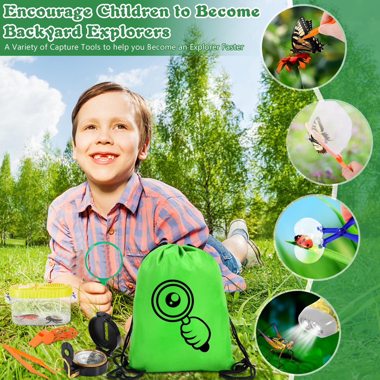 6-teiliges Forscherset Für Kinder - Insekten Beobachtungsbox Mit Lupe & Netz