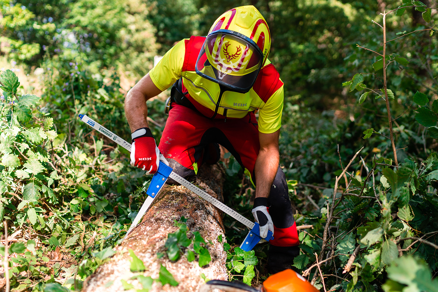 KOX Forstjacke Transform - Wandelbare Schnittschutzjacke Rot/Gelb